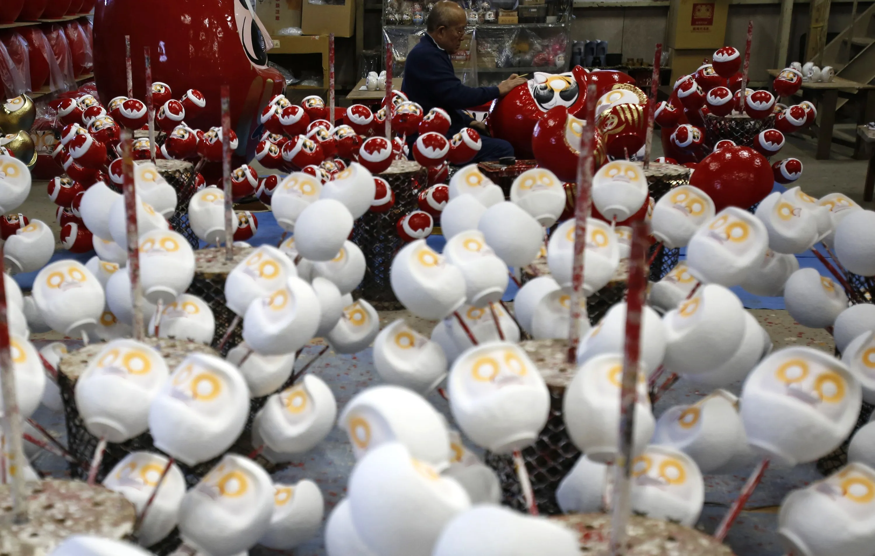 Japanese craftsman Sumikazu Nakata adds the final touches on a Daruma doll, which is believed to bring good luck, at his studio “Daimonya” in Takasaki, northwest of Tokyo November 23, 2014. (Photo by Yuya Shino/Reuters)