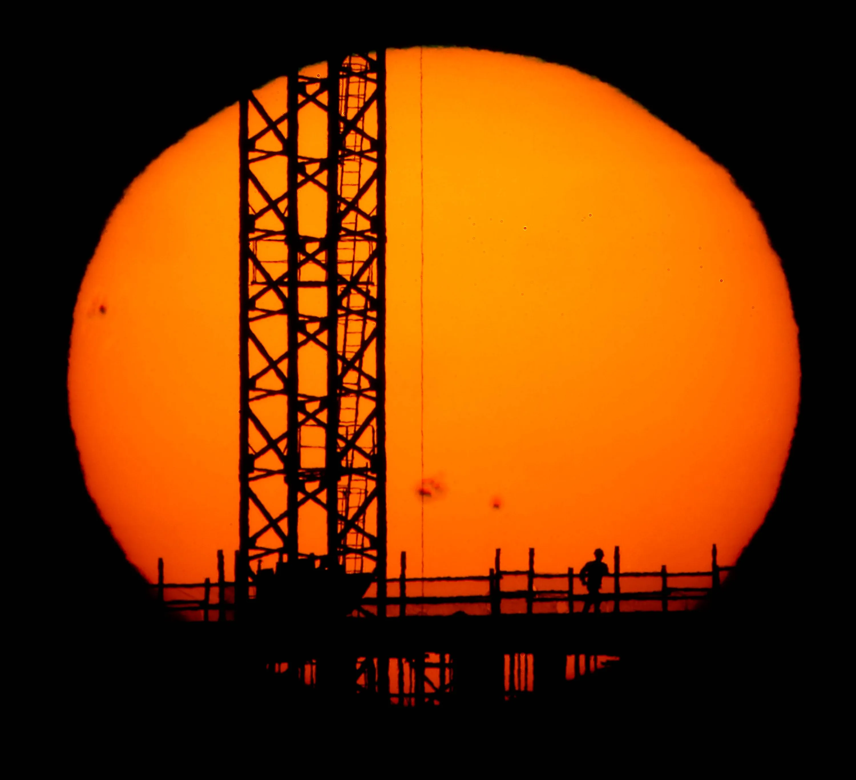 A worker is silhouetted against the setting sun as he walks across the top floor of a new hotel under construction Thursday, November 20, 2014, in Olathe, Kan. (Photo by Charlie Riedel/AP Photo)