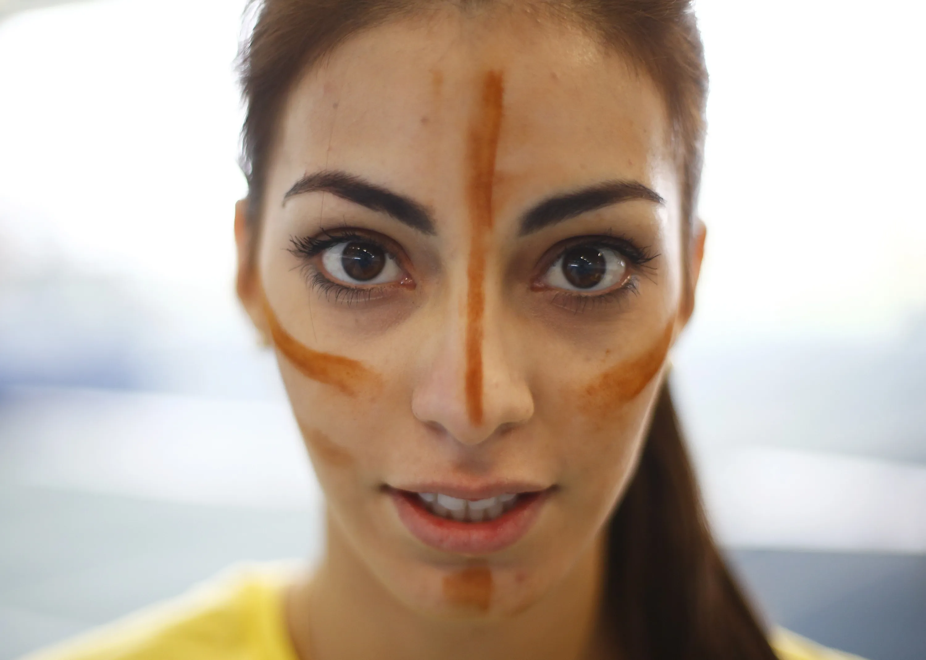Miss Ecuador Virginia Limongi wears face paint during the Miss World sports competition at the Lee Valley sports complex in north London, November 26, 2014. (Photo by Andrew Winning/Reuters)