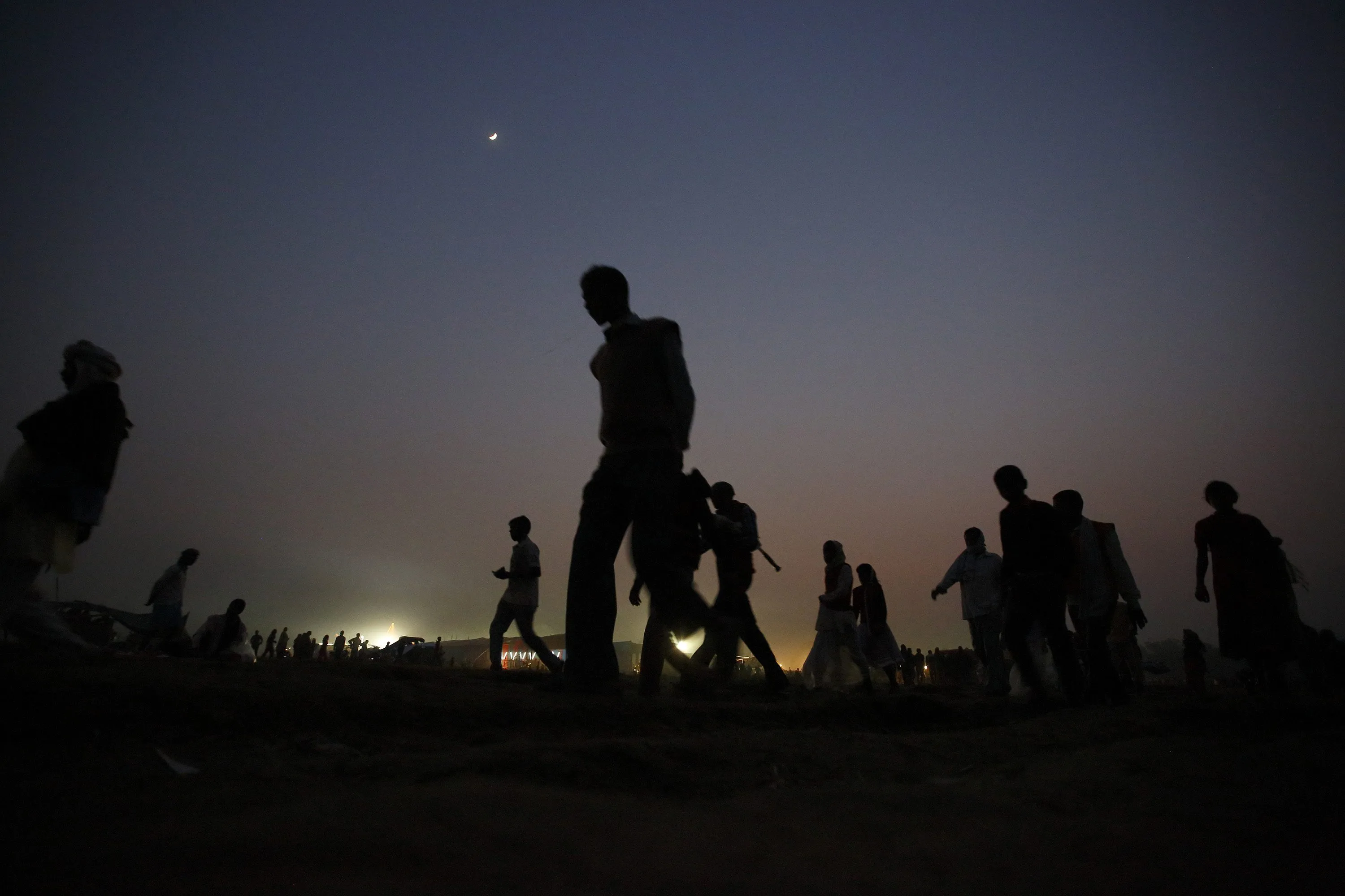 People walk along a field near the enclosure for buffalos awaiting sacrifice on the eve of the sacrificial ceremony for the “Gadhimai Mela” festival in Bariyapur November 27, 2014. (Photo by Navesh Chitrakar/Reuters)