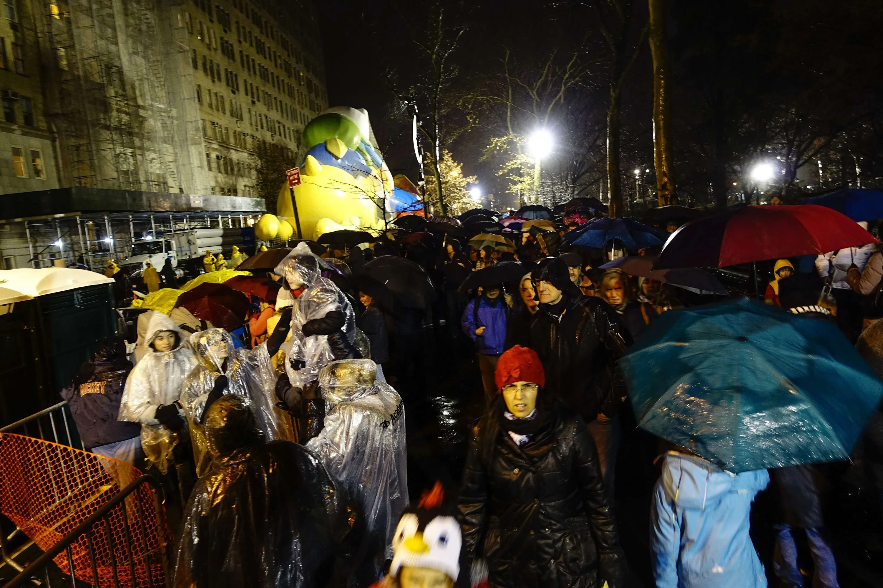 People watch as members of the Macy's Thanksgiving Day Parade balloon inflation team work during preparations for the 88th annual Macy's Thanksgiving Day Parade in New York, November 26, 2014. (Photo by Eduardo Munoz/Reuters)