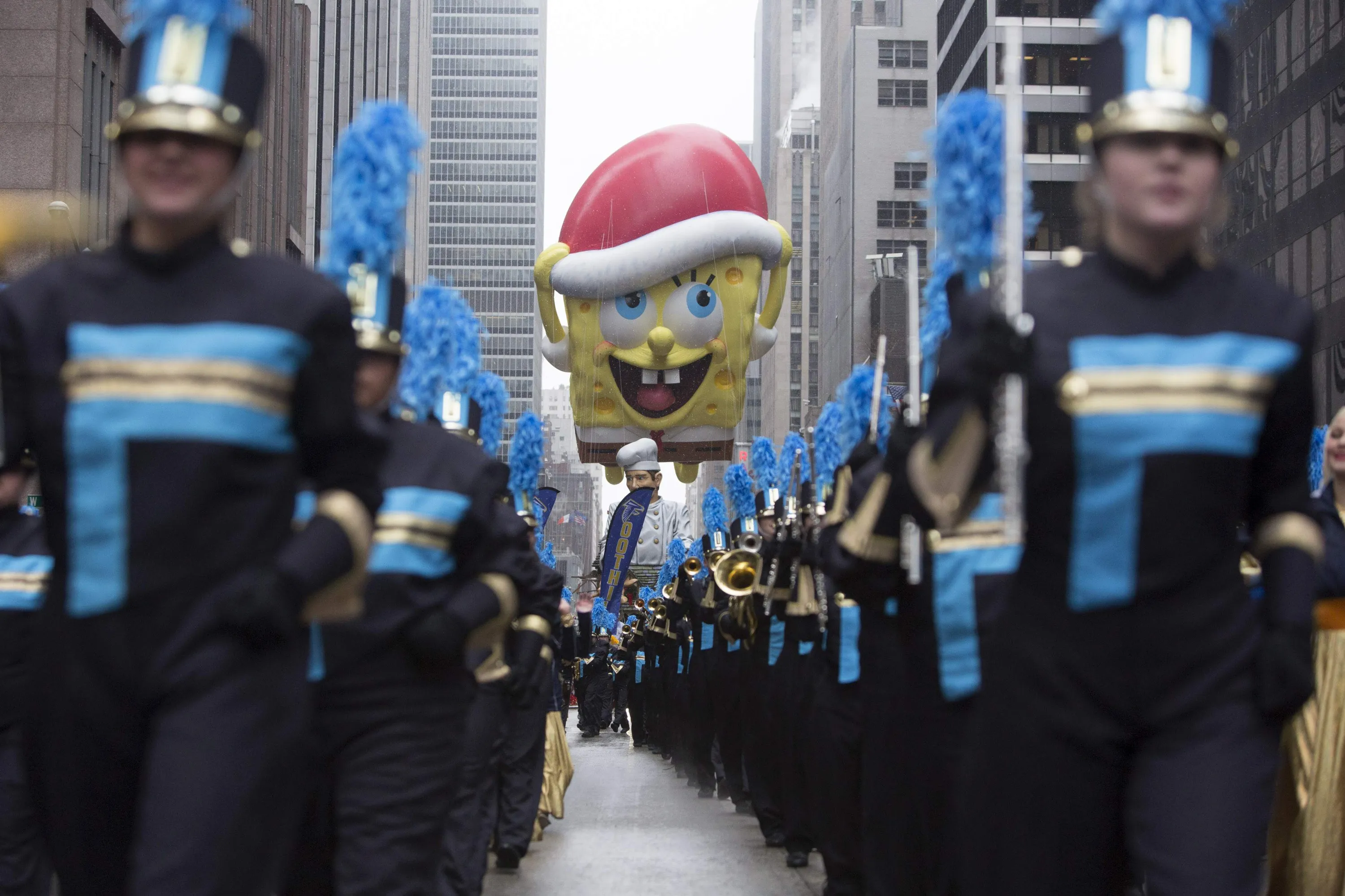 The Spongebob Squarepants balloon floats down Sixth Avenue during the 88th Annual Macy's Thanksgiving Day Parade in New York November 27, 2014. (Photo by Andrew Kelly/Reuters)
