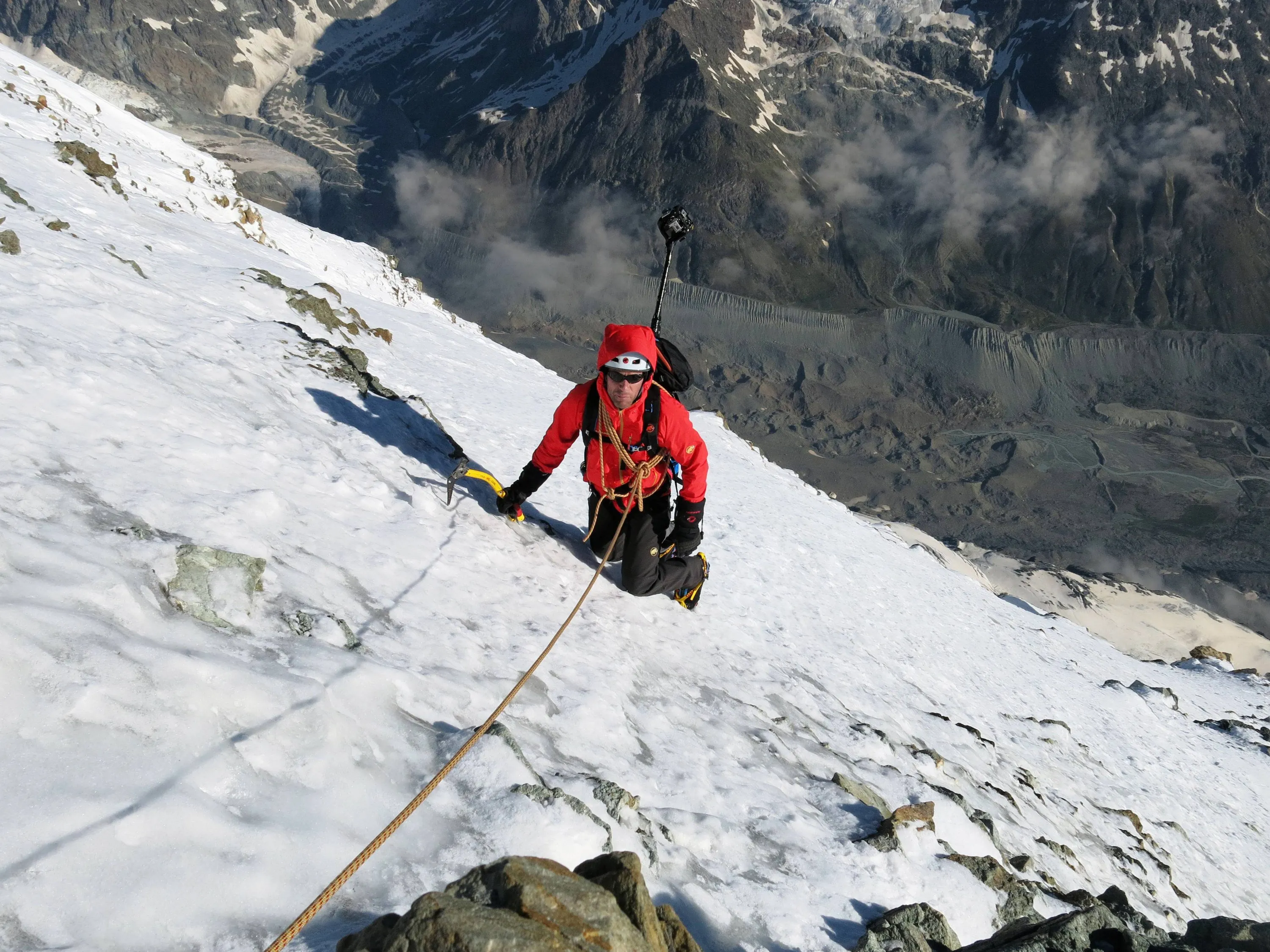 Swiss mountain sports specialist Mammut is opening up new horizons on the Matterhorn with it's “Project360” taking digital mapping into a new dimension by bringing a virtual climbing experience to the public of one of the highest mountains in the Swiss Alp. Mammut professional climbers David Fasel and Stephan Siegrist each carried specially designed backpacks equipped with six cameras to capture the 360 degree panoramic view while scaling the legendary mountain and the results of their efforts can be viewed at www.project360.matterhorn.ch. David Fasel, who has climbed the Matterhorn over 200 times is just below the summit. Many other exciting peaks are still to follow. (Photo by Stephan Siegrist/Mammut/Photopress via AP Images)