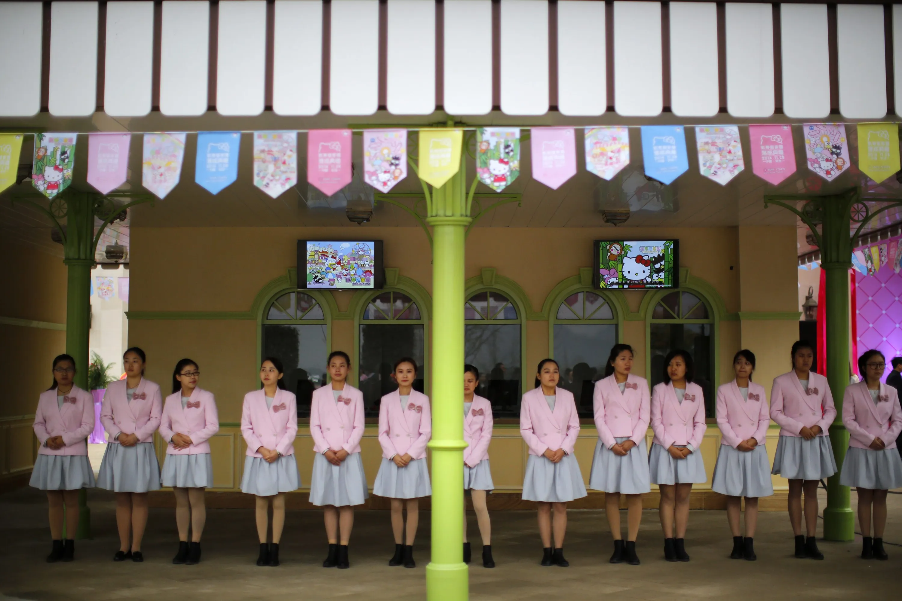 Attendants arrive at an inauguration ceremony of a Hello Kitty amusement park in Anji, Zhejiang province November 28, 2014. (Photo by Carlos Barria/Reuters)