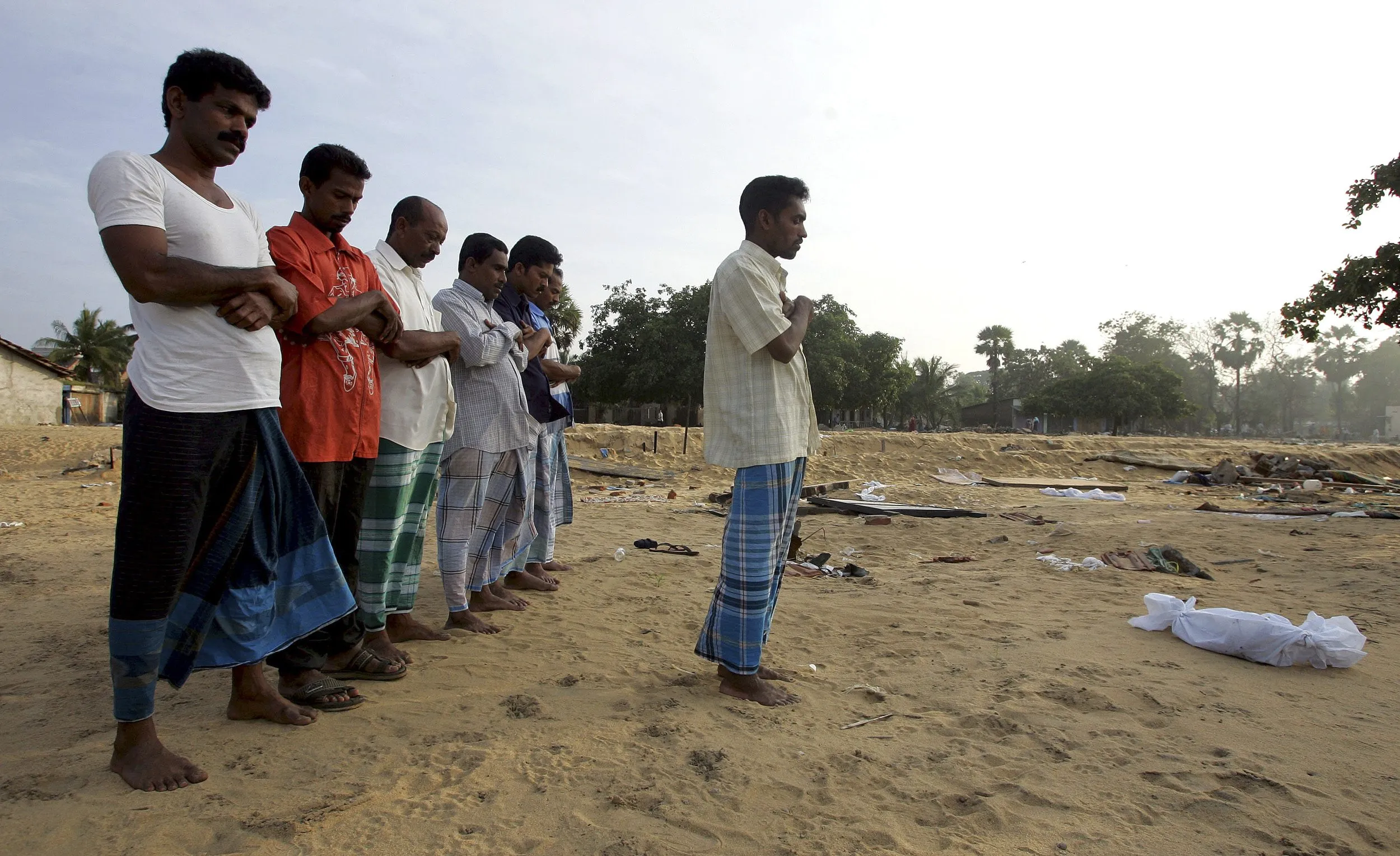 Sri Lankan Muslims pray for an infant killed in a tsunami, prior to the infant's burial in the town of Kalmunai on Sri Lanka's east coast in this January 14, 2005 file photo. (Photo by Arko Datta/Reuters)