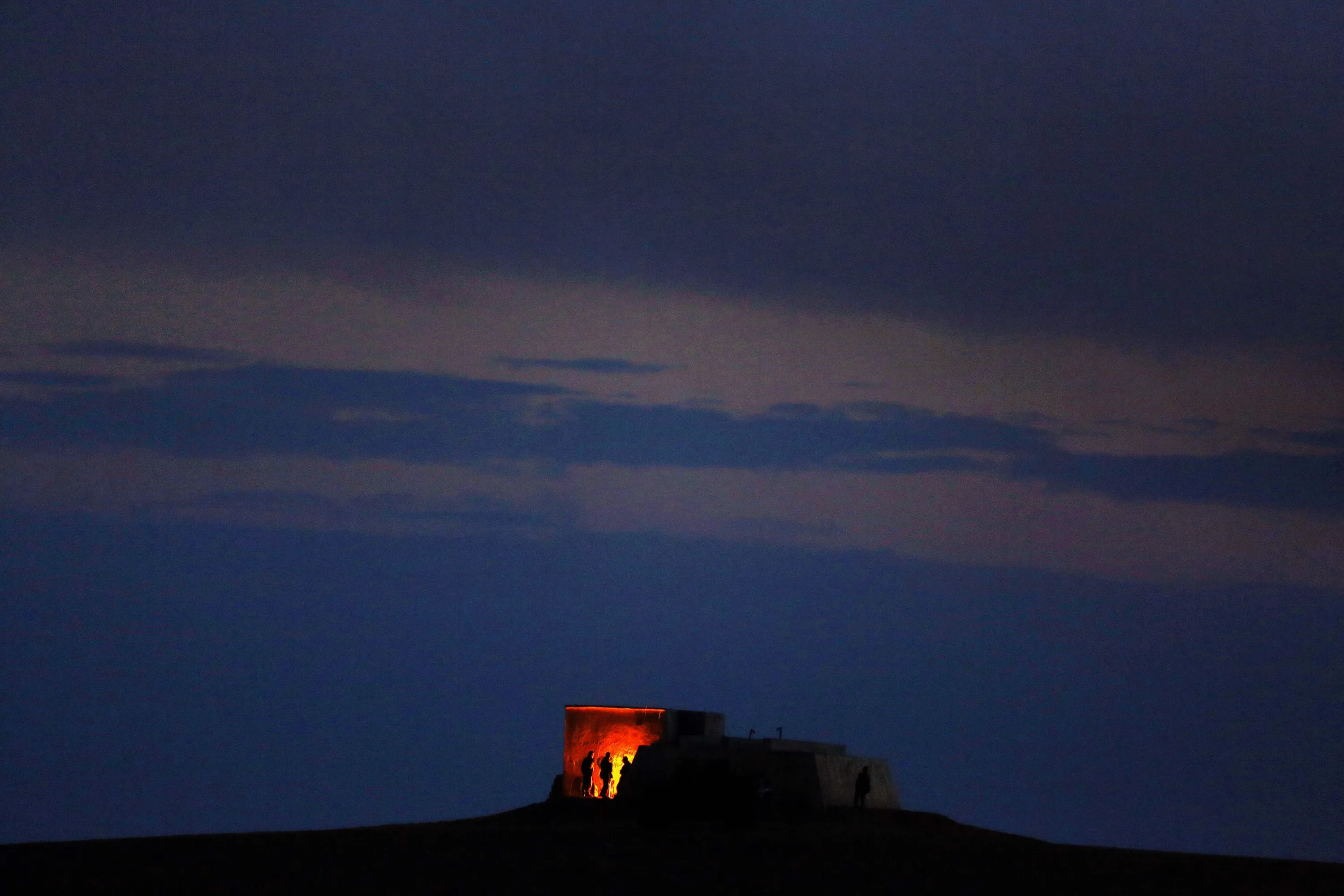 Turkish soldiers keep warm atop a hill overlooking the Syrian town of Kobani, near the Mursitpinar border crossing on the Turkish-Syrian border, in the southeastern town of Suruc in Sanliurfa province, in this November 2, 2014 file photo. (Photo by Yannis Behrakis/Reuters)