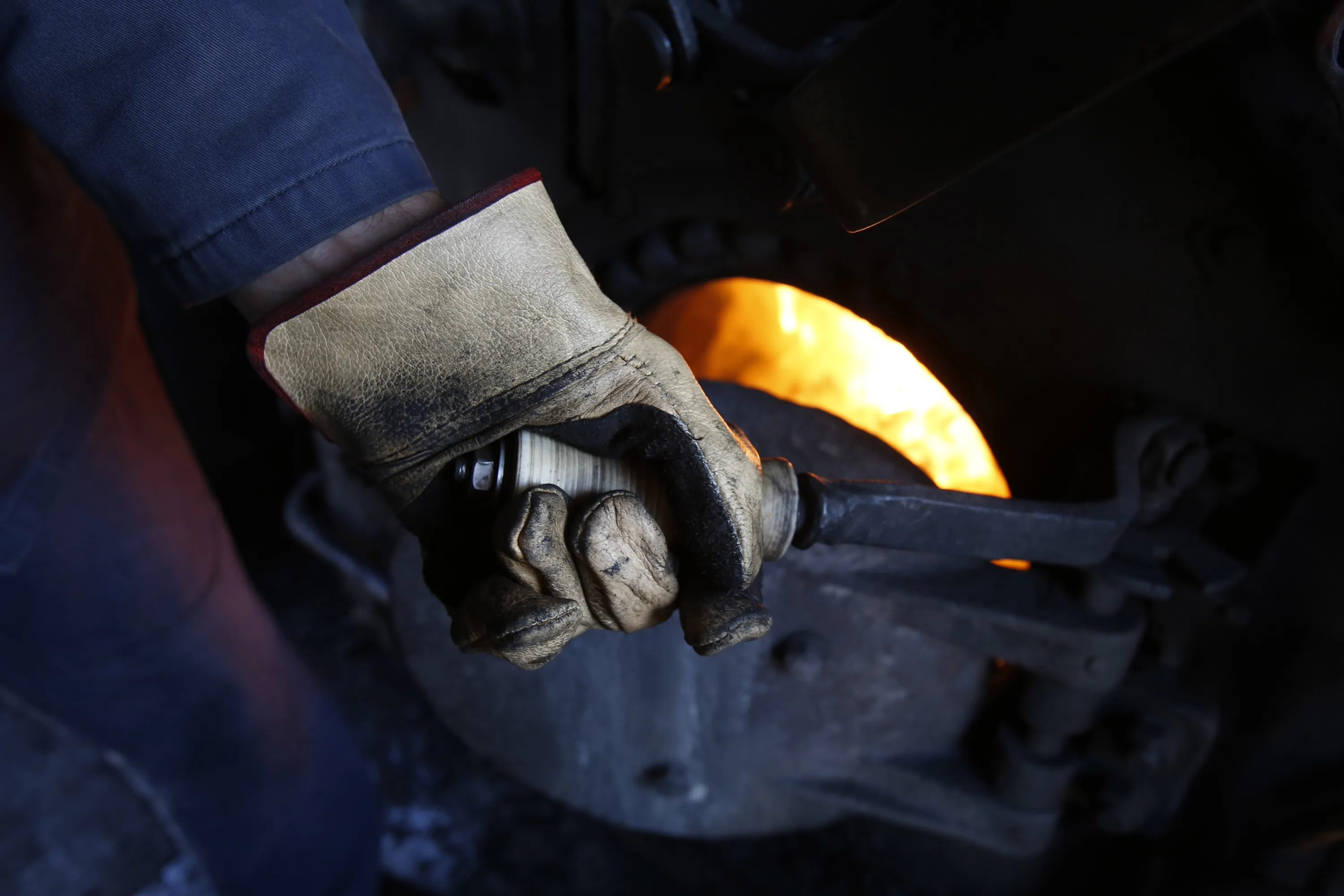 Bosnian worker Sefik Salihovic fills the steam engine with coal at the coal mine of Oskova in the Bosnian town of Banovici, 140 kms (86.9 miles) north of Sarajevo, on Monday November 24, 2014. (Photo by Amel Emric/AP Photo)
