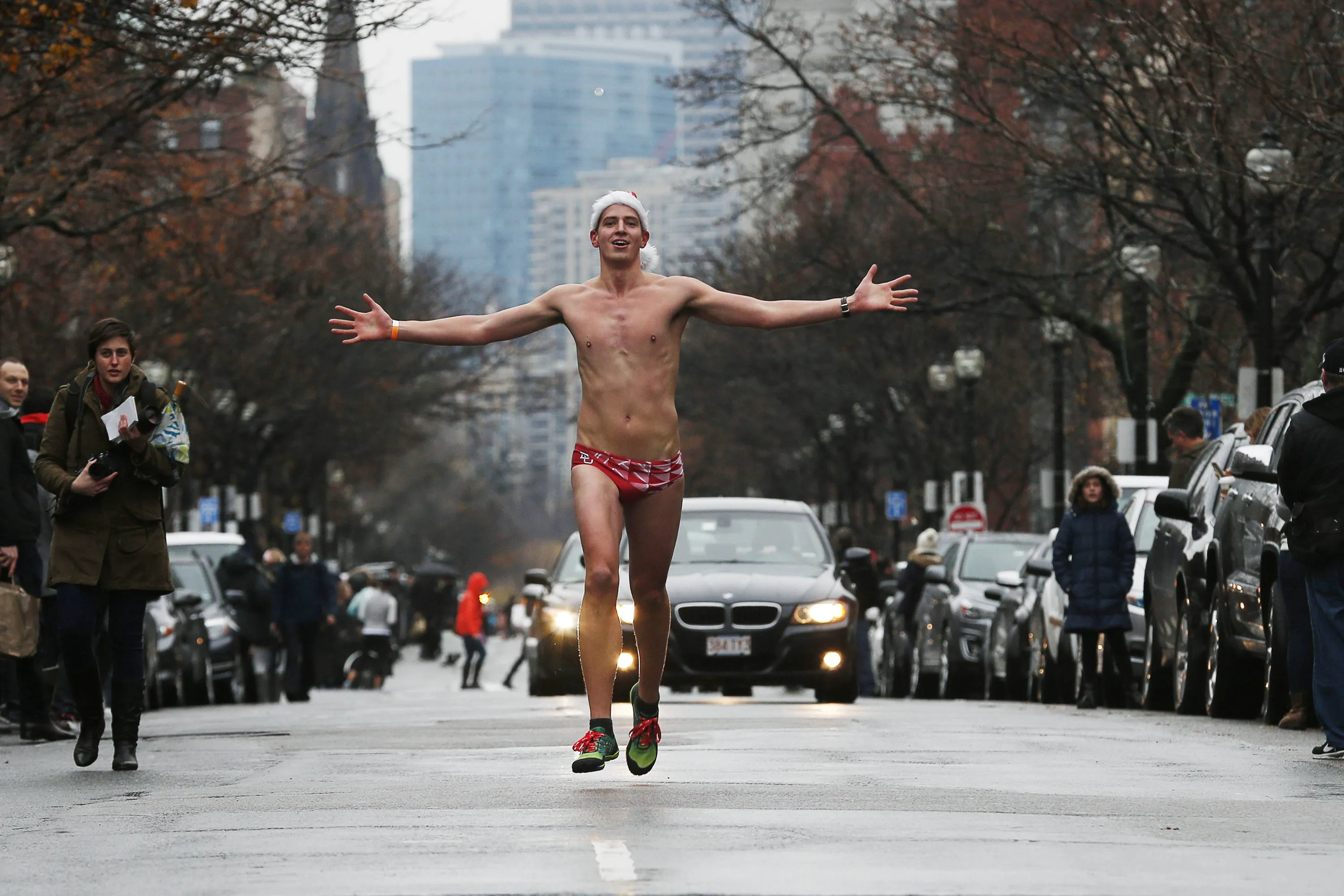 A runner takes part in the 15th annual Santa Speedo Run, a charity run through the streets of the Back Bay, in Boston, Massachusetts December 6, 2014. (Photo by Brian Snyder/Reuters)