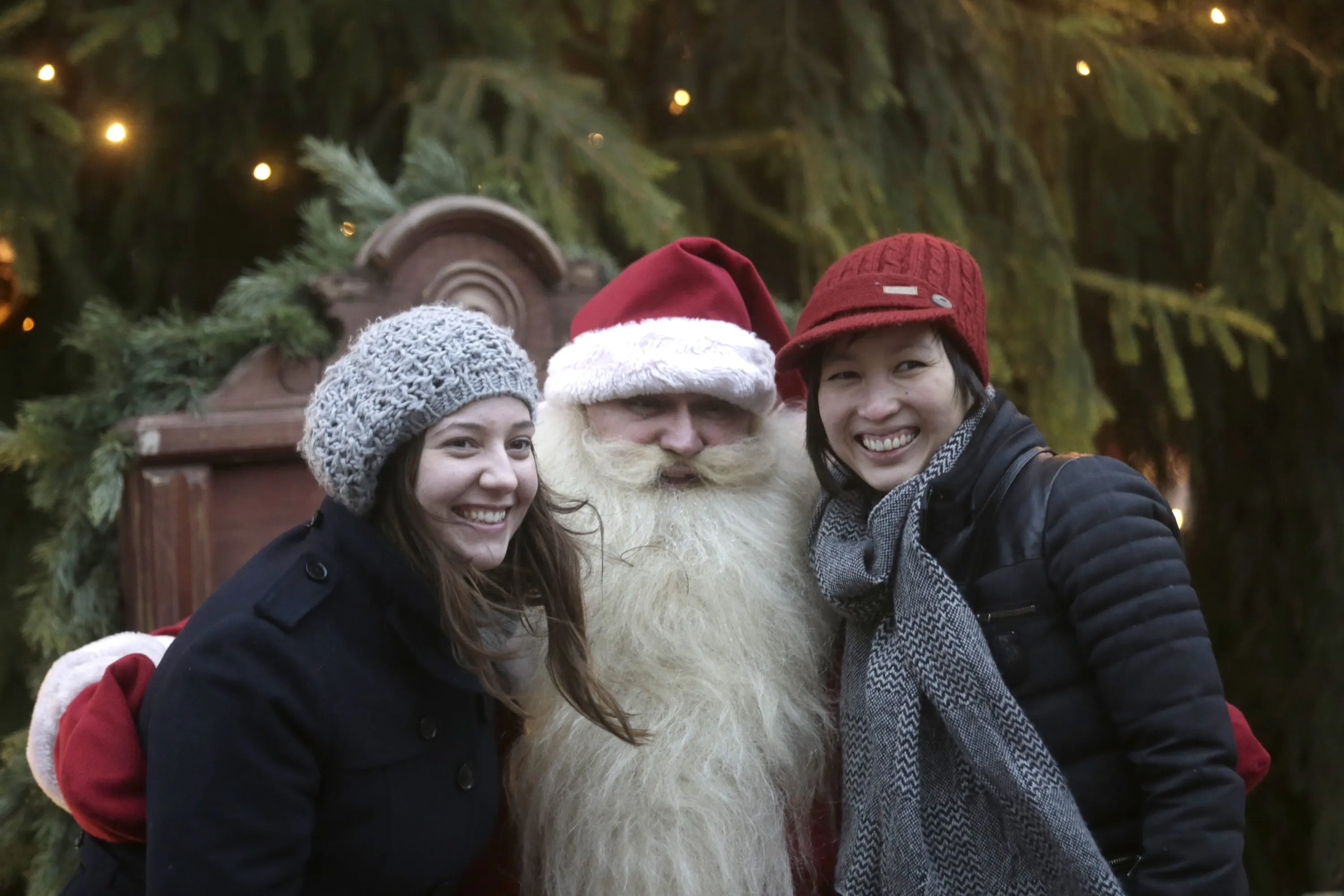 Two women pose for a picture with a man dressed as Santa Claus at the Christmas market in Riga December 6, 2014. (Photo by Ints Kalnins/Reuters)