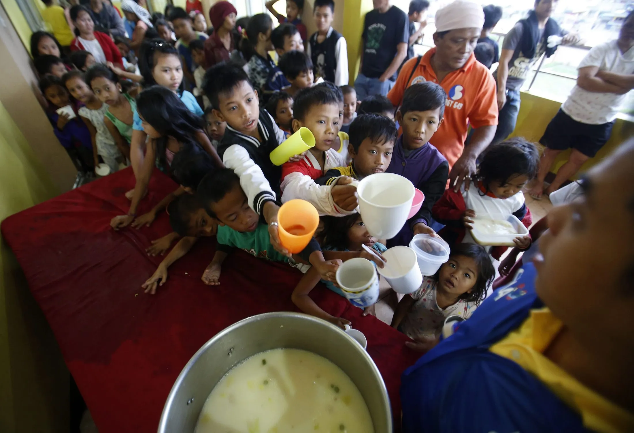 Children queue for food at an evacuation centre for the coastal community, to shelter from typhoon Hagupit, near Manila, December 8, 2014. Hundreds of thousands of Filipinos began to return to their homes battered by a powerful typhoon at the weekend, but the nation collectively breathed a sigh of relief as a massive evacuation plan appeared to minimise fatalities. (Photo by Cheryl Gagalac/Reuters)