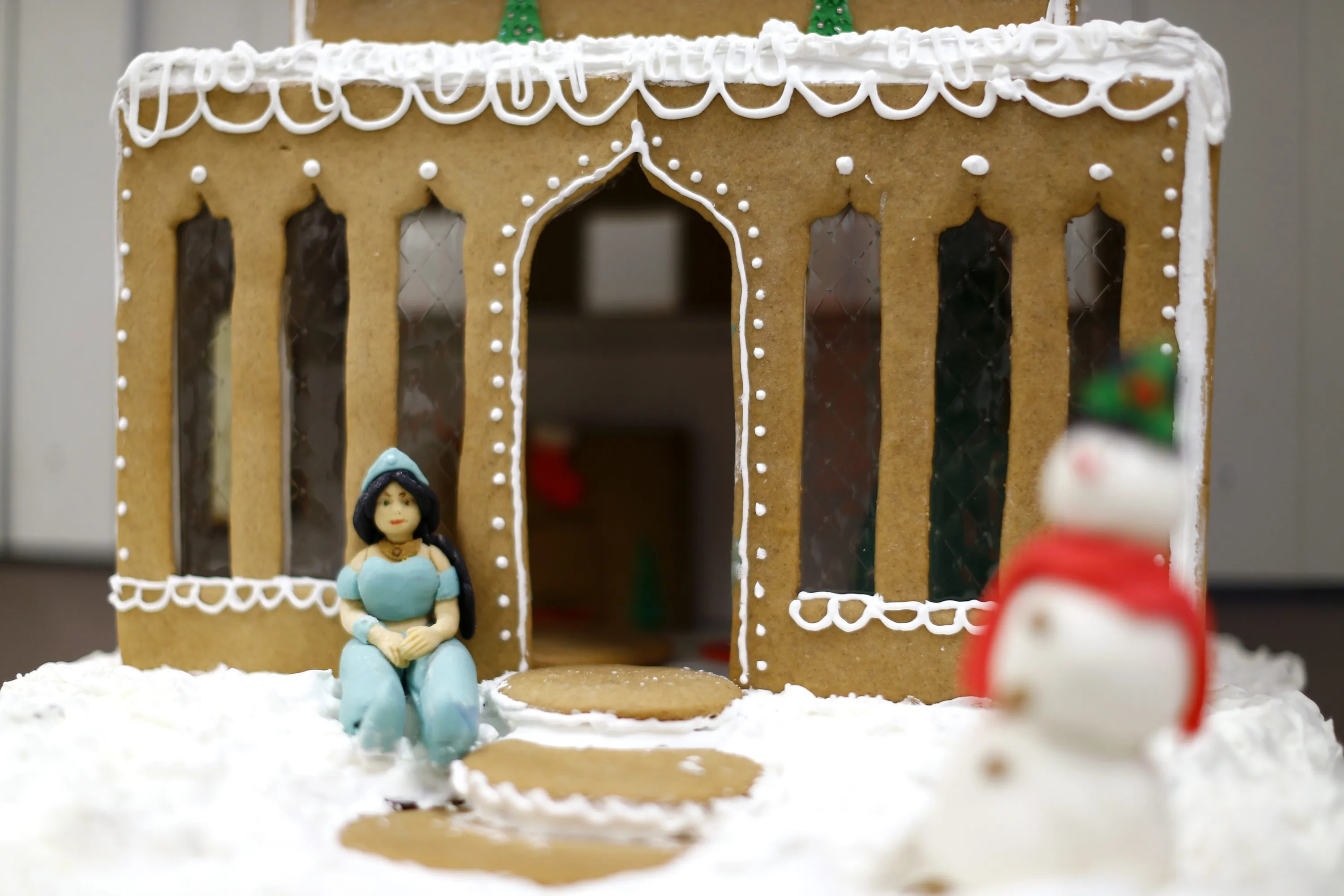 A fairy tale and movie-themed gingerbread house creation made by pastry students of the San Ysidro Adult School Culinary Arts program is pictured during their 9th annual gingerbread house competition in San Ysidro, California December 9, 2014. (Photo by Mike Blake/Reuters)