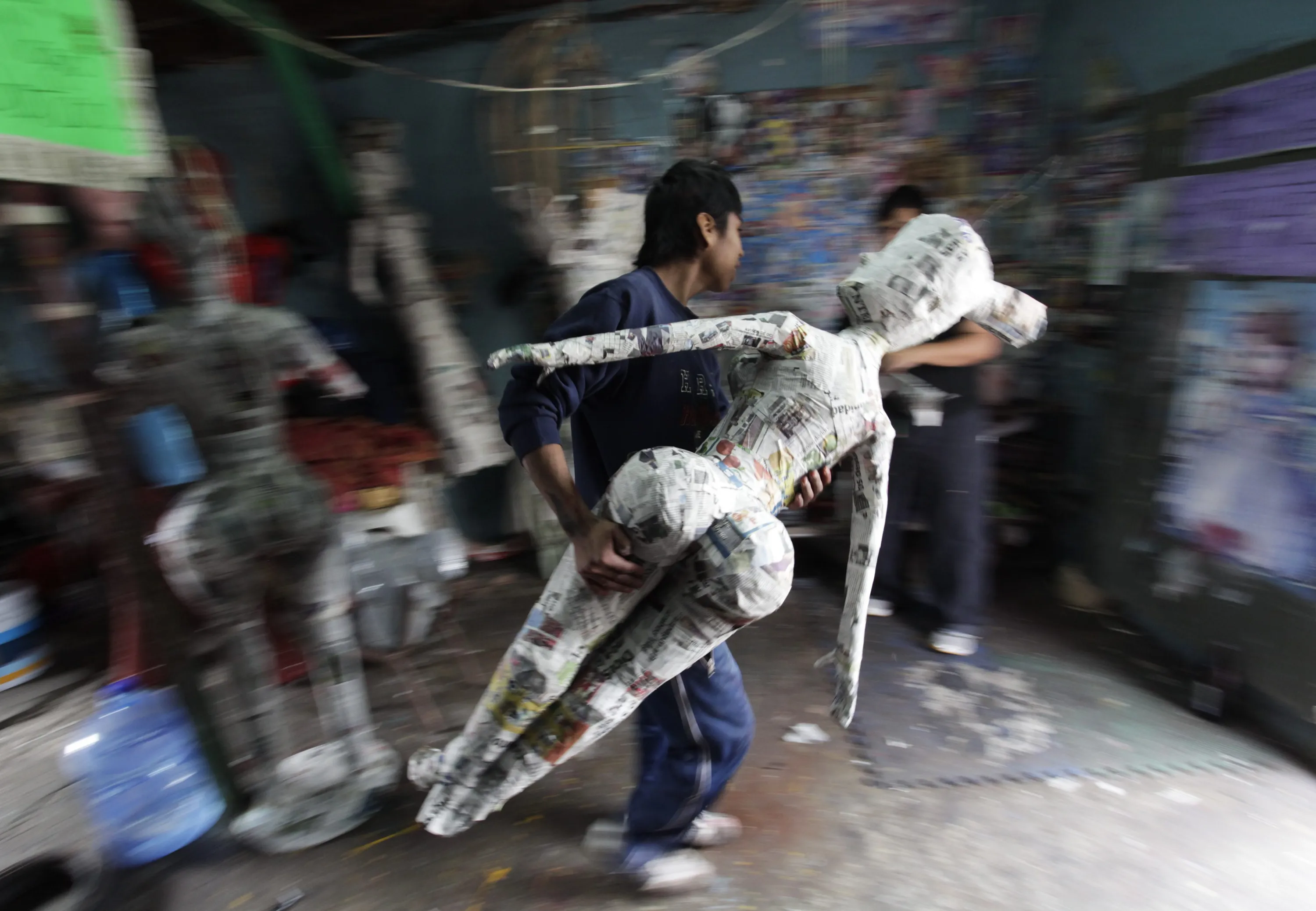 An assistant carries a pinata, in its early stages of production and meant to depict TV celebrity Kim Kardashian, at a workshop in Reynosa December 4, 2014. (Photo by Daniel Becerril/Reuters)