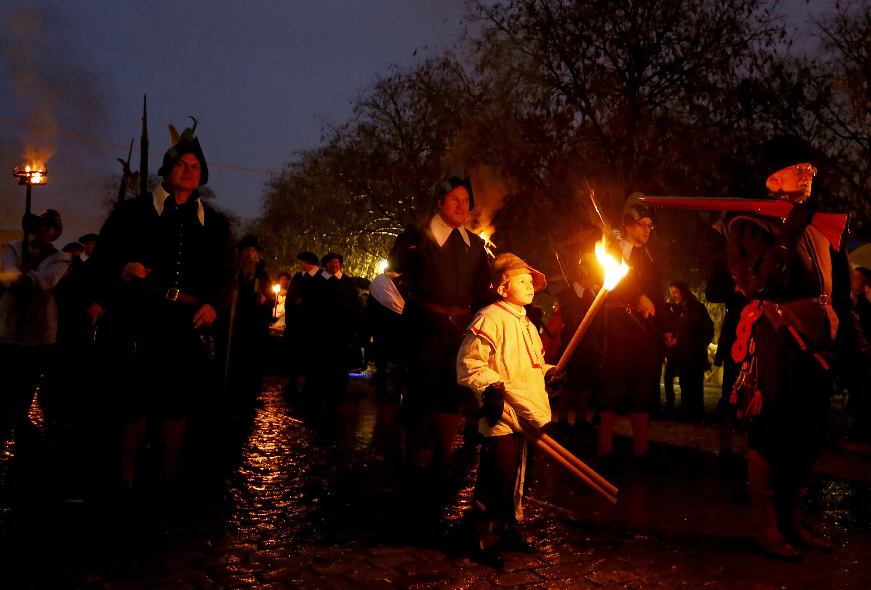 Members of the Compagnie 1602 take part in a procession in Geneva December 14, 2014. (Photo by Pierre Albouy/Reuters)