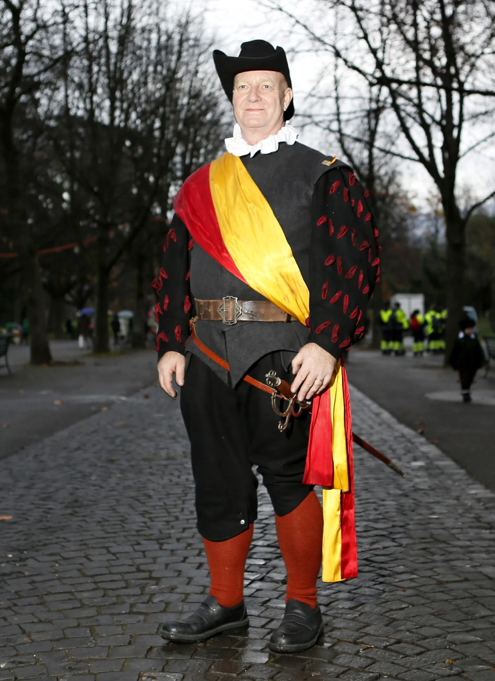 A member of Compagnie 1602 playing the role of an artilleryman poses before a procession in Geneva December 14, 2014. (Photo by Pierre Albouy/Reuters)
