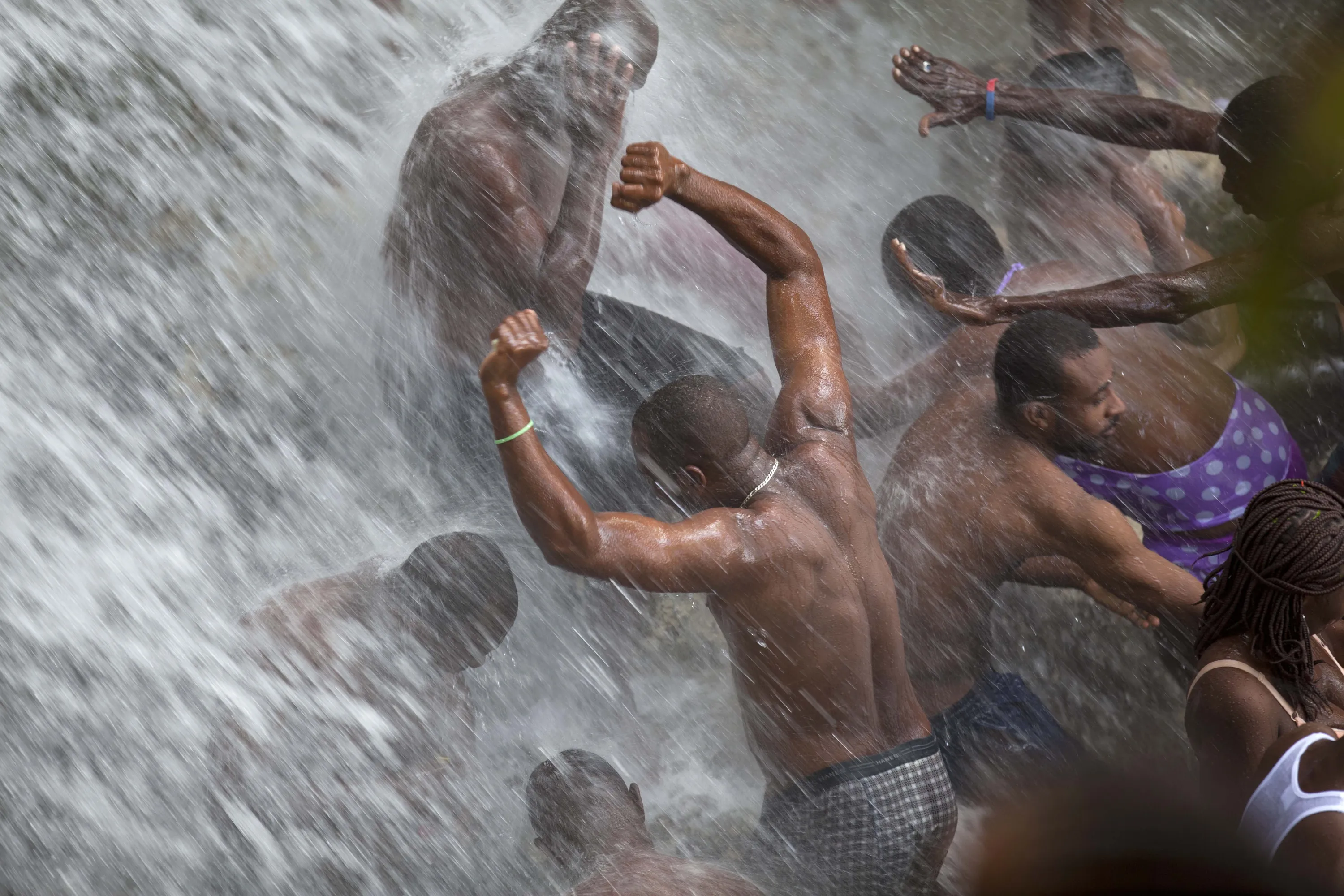 In this July 16, 2014 file photo, voodoo pilgrims bathe in a waterfall believed to have purifying powers during the annual celebration in Saut d' Eau, Haiti. The annual pilgrimage is made in honor of Haiti's most celebrated patron saint, Our Lady of Mount Carmel, who is supposed to have appeared on a palm tree in 1847 in the Palm Grove in Saut d'Eau and was integrated into Haiti's voodoo culture as the goddess of love. (Photo by Dieu Nalio Chery/AP Photo)