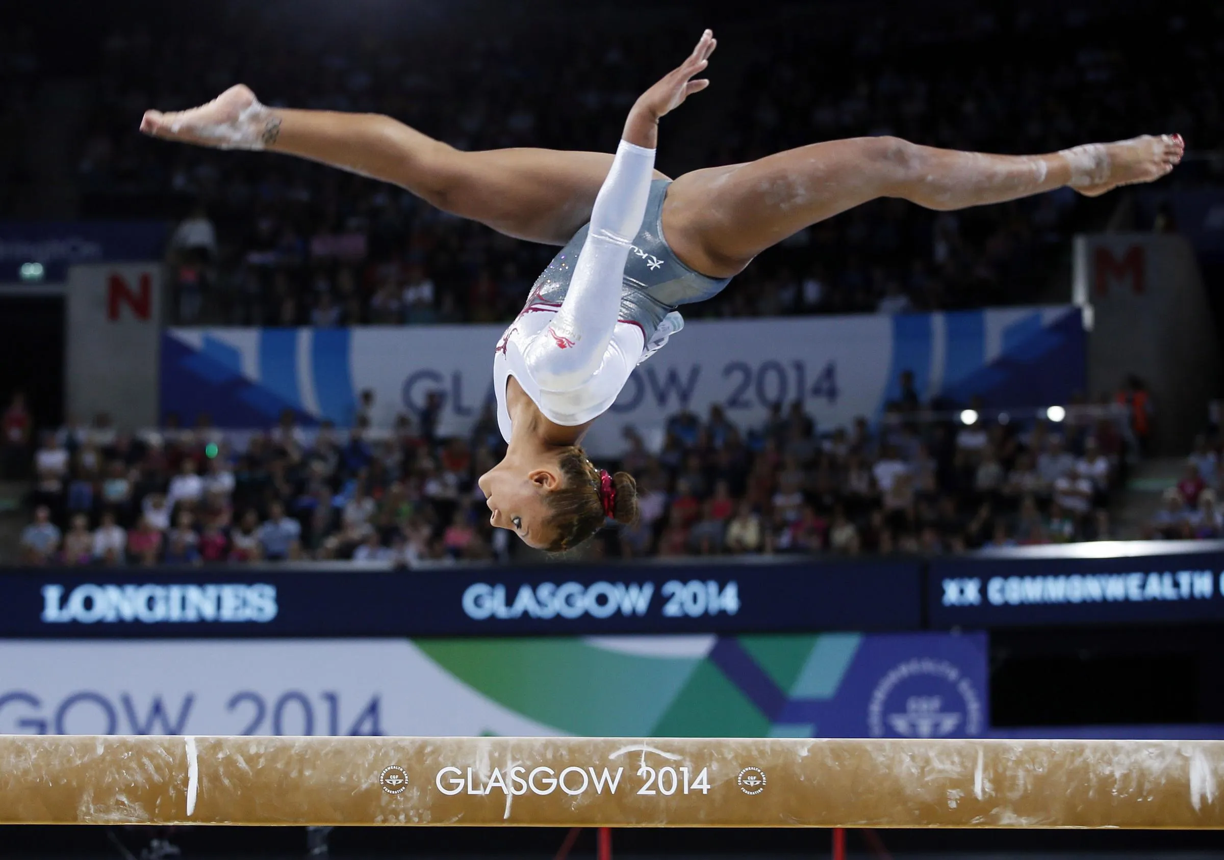 Claudia Fragapane of England leaps during her beam routine as she takes part in the women's team final and individual qualification gymnastic competition at the Commonwealth Games Glasgow 2014, in Glasgow, Scotland, Tuesday, July, 29, 2014. (Photo by Alastair Grant/AP Photo)