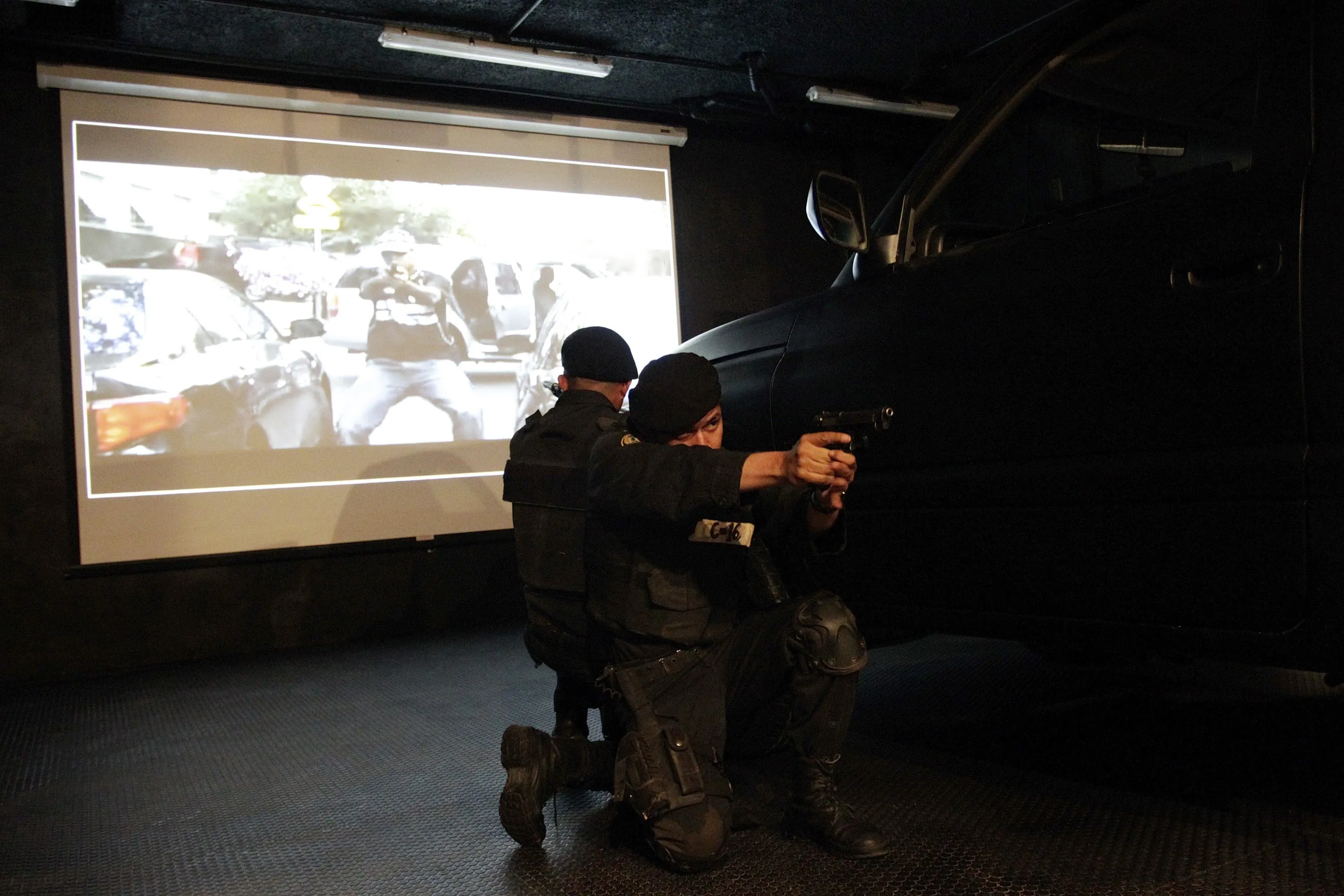 Members of the Fuerza Civil (Civil Force) police unit take part in a gunfight simulation during a media presentation to show the police model that the federal government wants for the rest of the country, at the police academy in Monterrey December 17, 2014. (Photo by Daniel Becerril/Reuters)