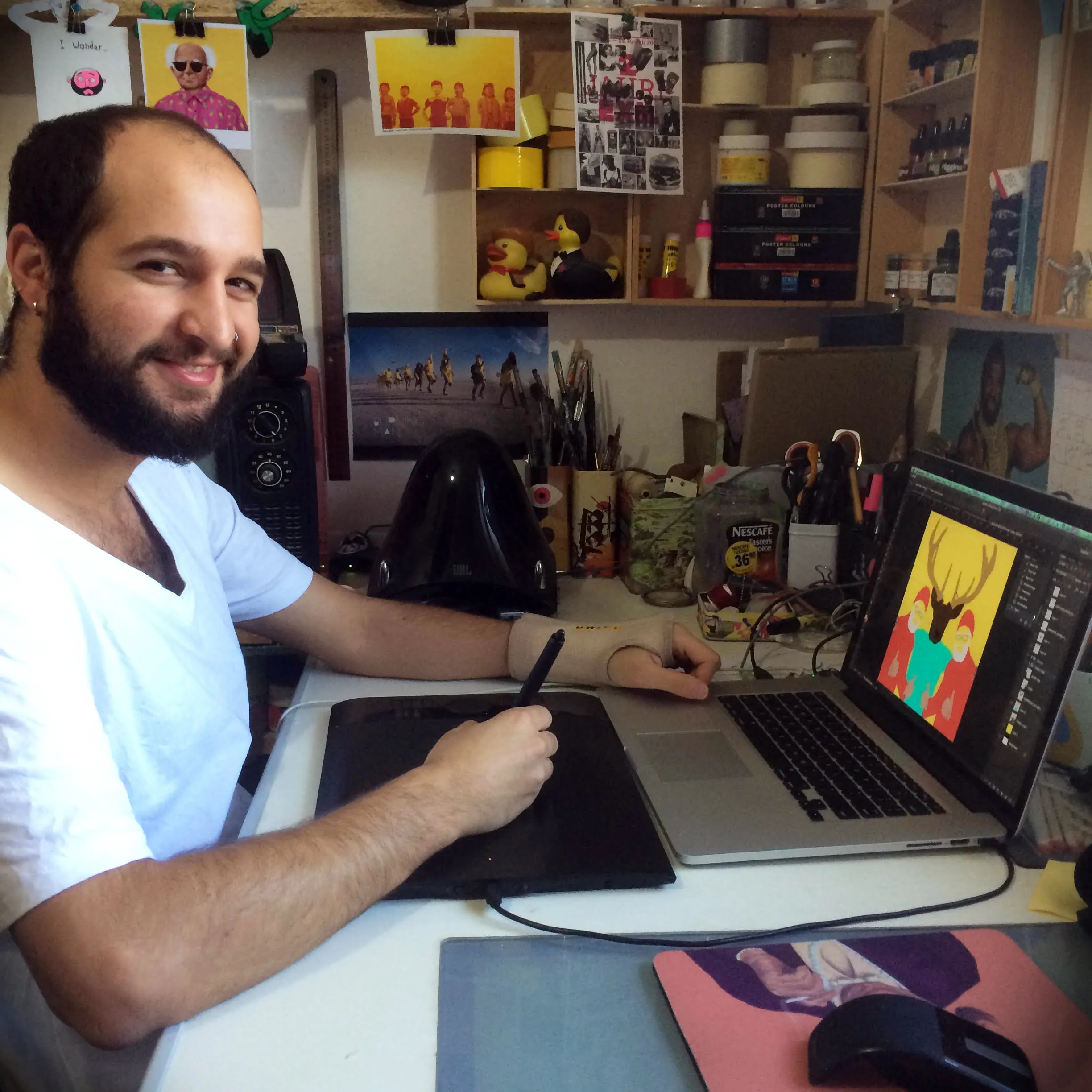 Artist, Amit Shimoni in his studio. (Photo by Amti Shimoni/Caters News)