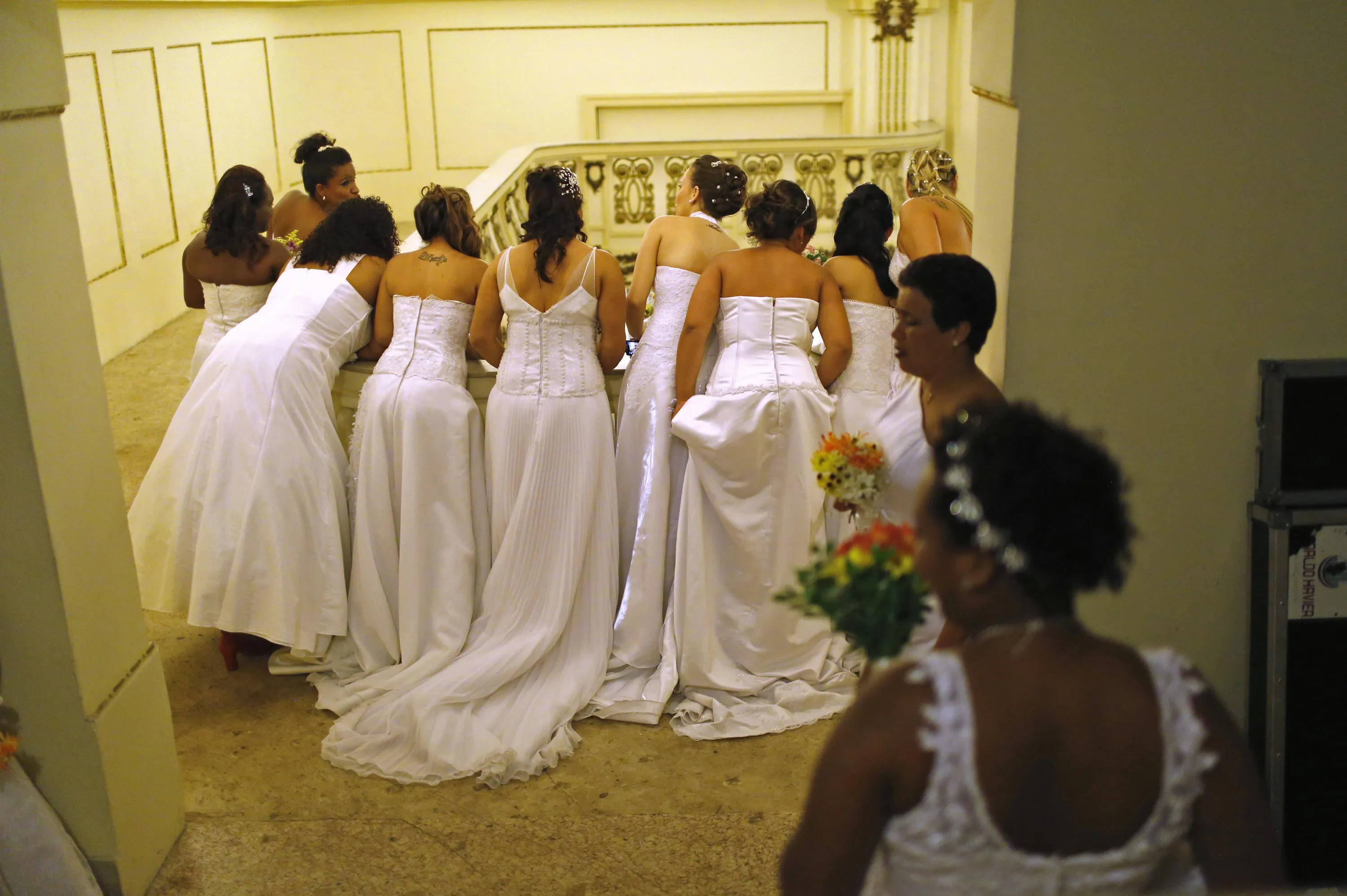 Brides from Santa Marta slum wait for their group wedding to begin in Rio de Janeiro December 17, 2014. (Photo by Pilar Olivares/Reuters)