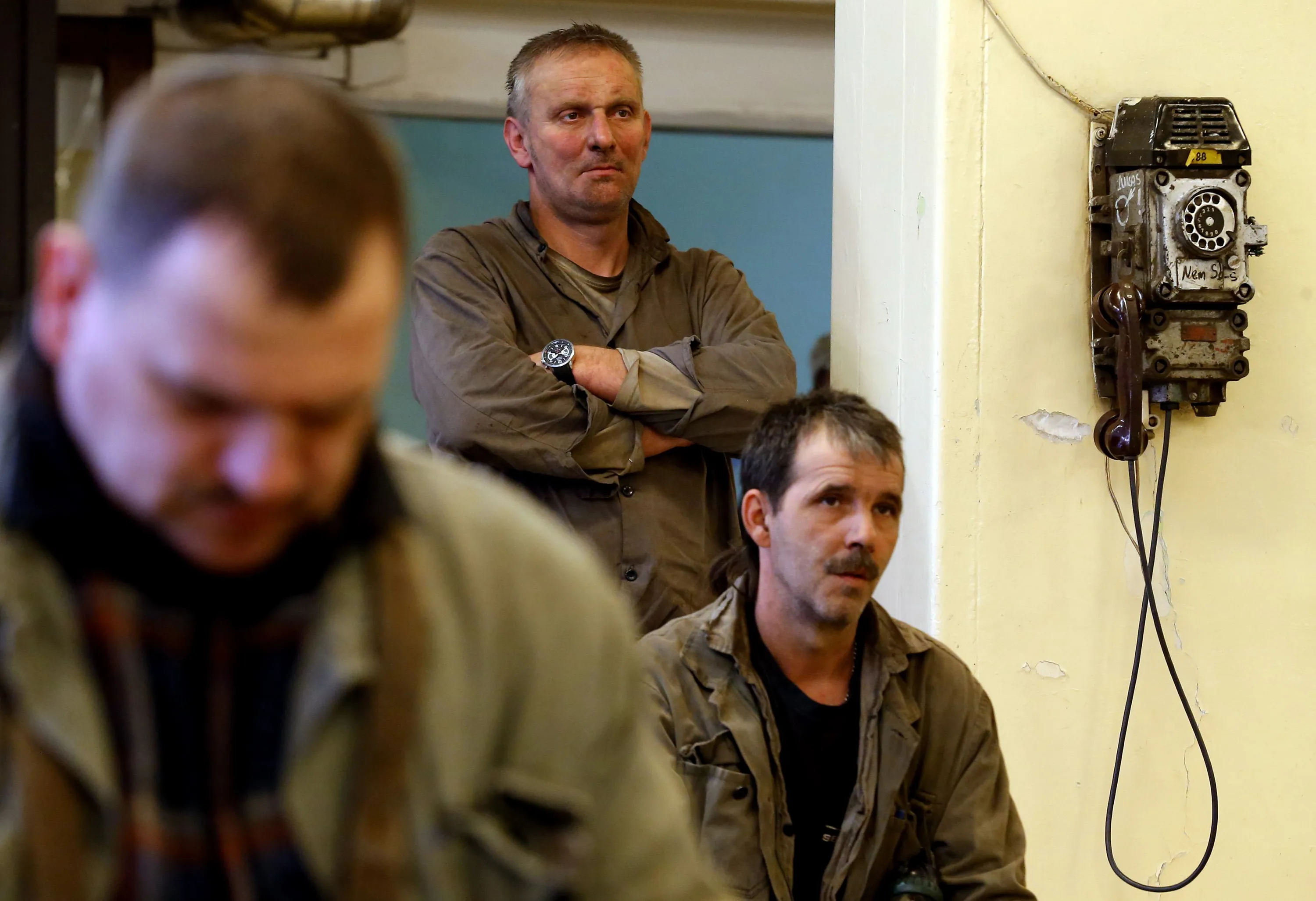 Miners wait to start their last working day at Hungary's last hard coal deep-cast mine at Markushegy December 23, 2014. (Photo by Laszlo Balogh/Reuters)
