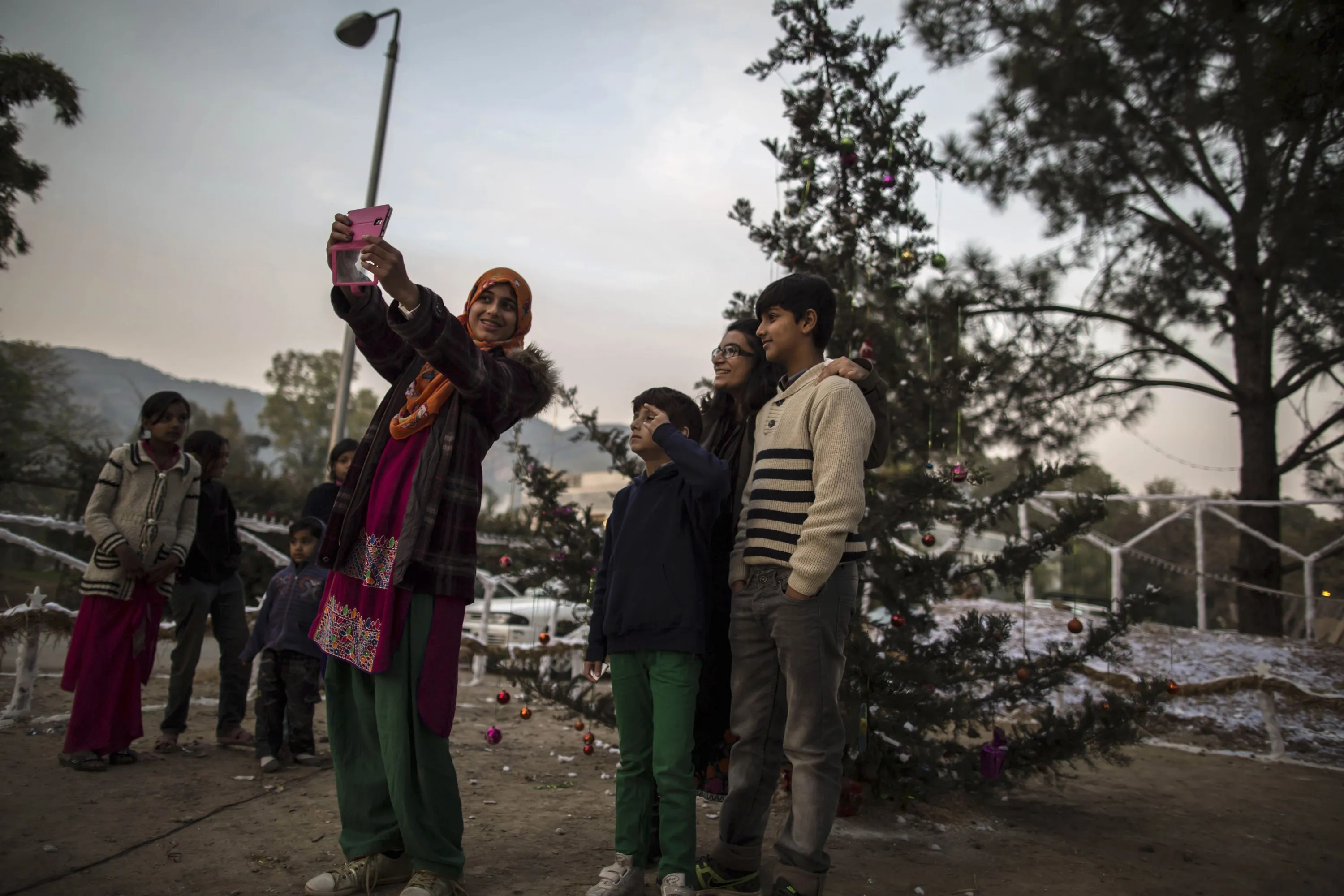 Muslims take a selfie near a Christmas tree ahead of Christmas in a Christian slum in Islamabad December 24, 2014. (Photo by Zohra Bensemra/Reuters)