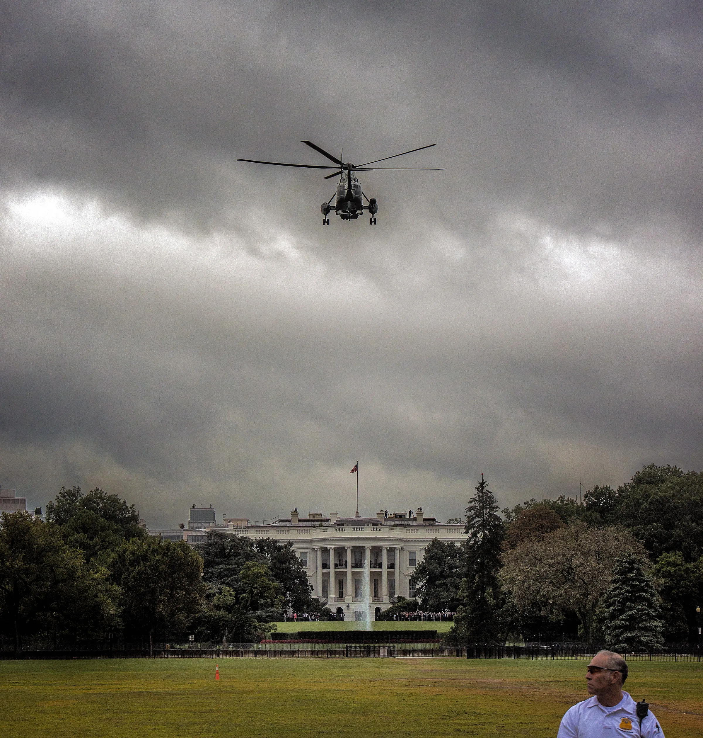 Marine One comes in for a landing at the White House as seen from the bottom of the Ellipse near Constitution avenue, on September, 25, 2014 in Washington, DC. (Photo by Bill O'Leary/The Washington Post)