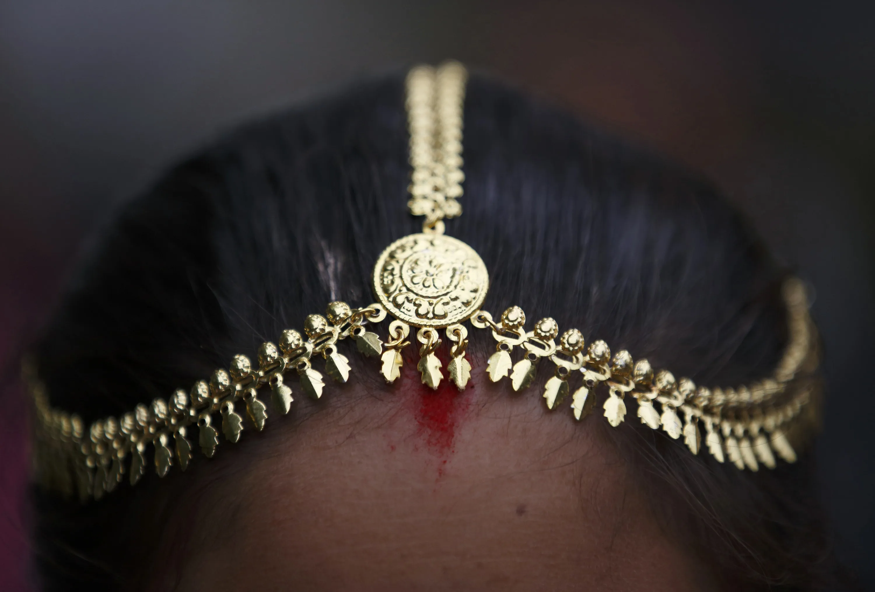 A traditional ornament is pictured on the head of a Tharu girl during a parade marking an Elephant Festival event at Sauraha in Chitwan, about 170 km (106 miles) south of Kathmandu December 26, 2014. (Photo by Navesh Chitrakar/Reuters)