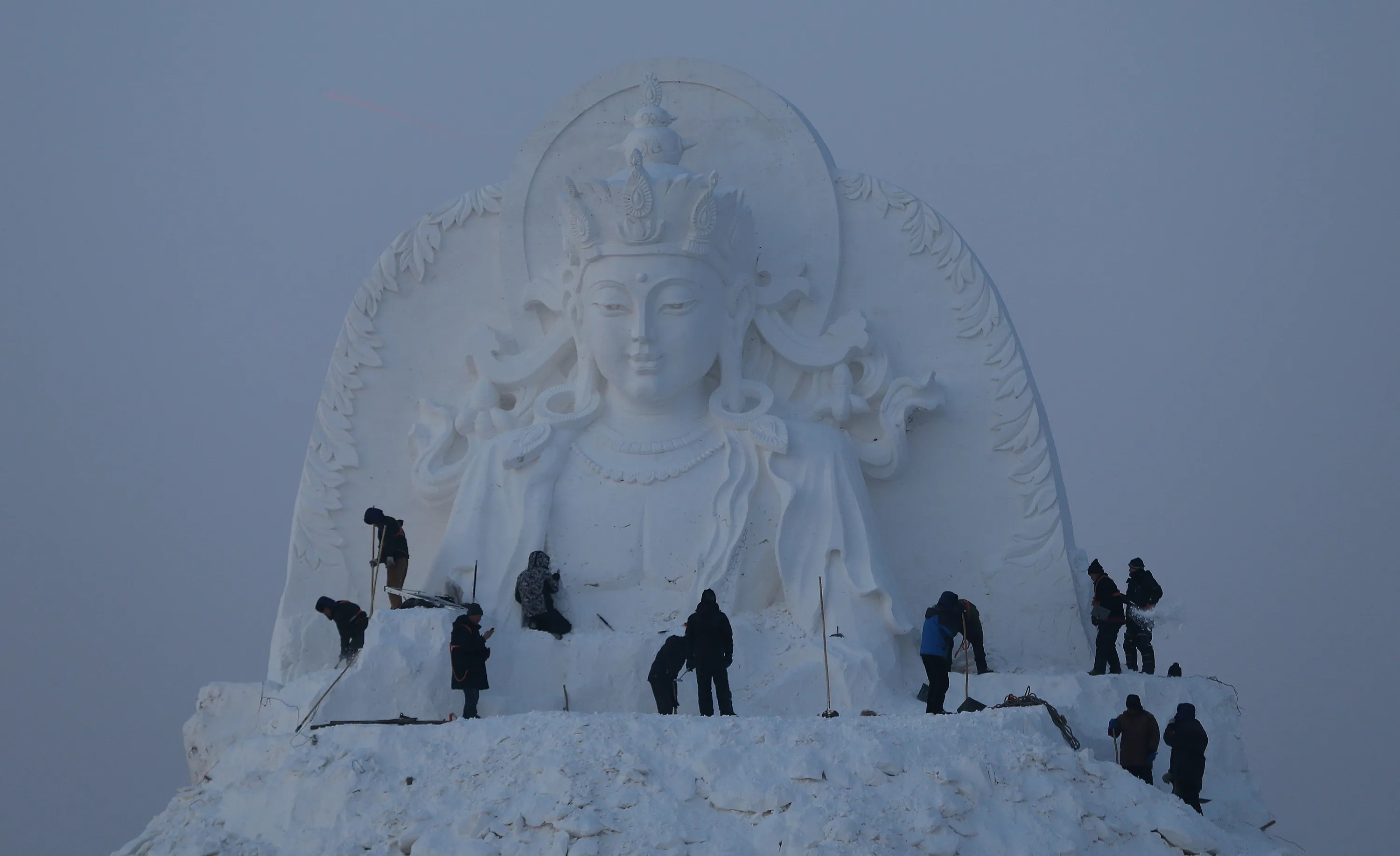 Sculptors work on a snow sculpture of Newton in the 16th Harbin Ice and Snow World, which will officially open on January 5 on December 22, 2014 in Harbin, China. (Photo by Feature China/Barcroft Media)