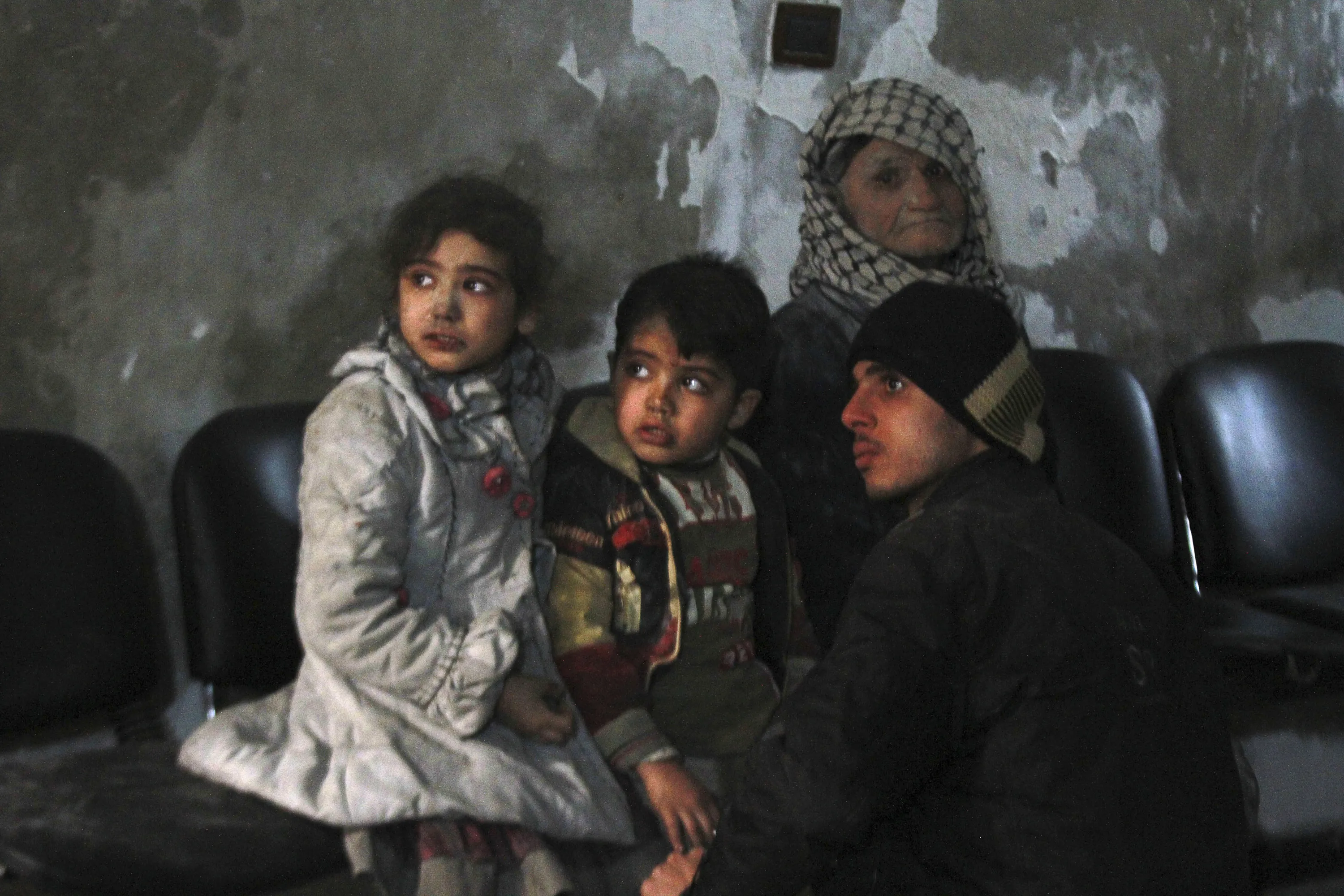 Injured children wait in a field hospital after what activists said was was an air strike by forces loyal to Syria's President Bashar al-Assad in the Duma neighbourhood of Damascus, December 21, 2014. (Photo by Badra Mamet/Reuters)