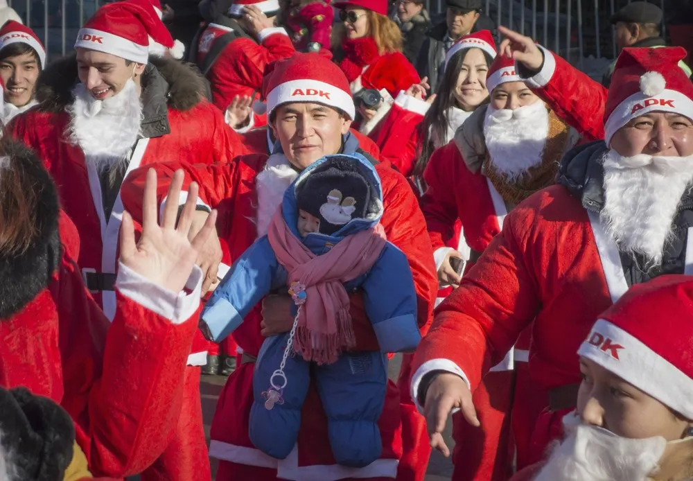 Revelers dressed as Father Frost, the equivalent of Santa Claus, dance during a parade in Almaty December 28, 2014. (Photo by Shamil Zhumatov/Reuters)