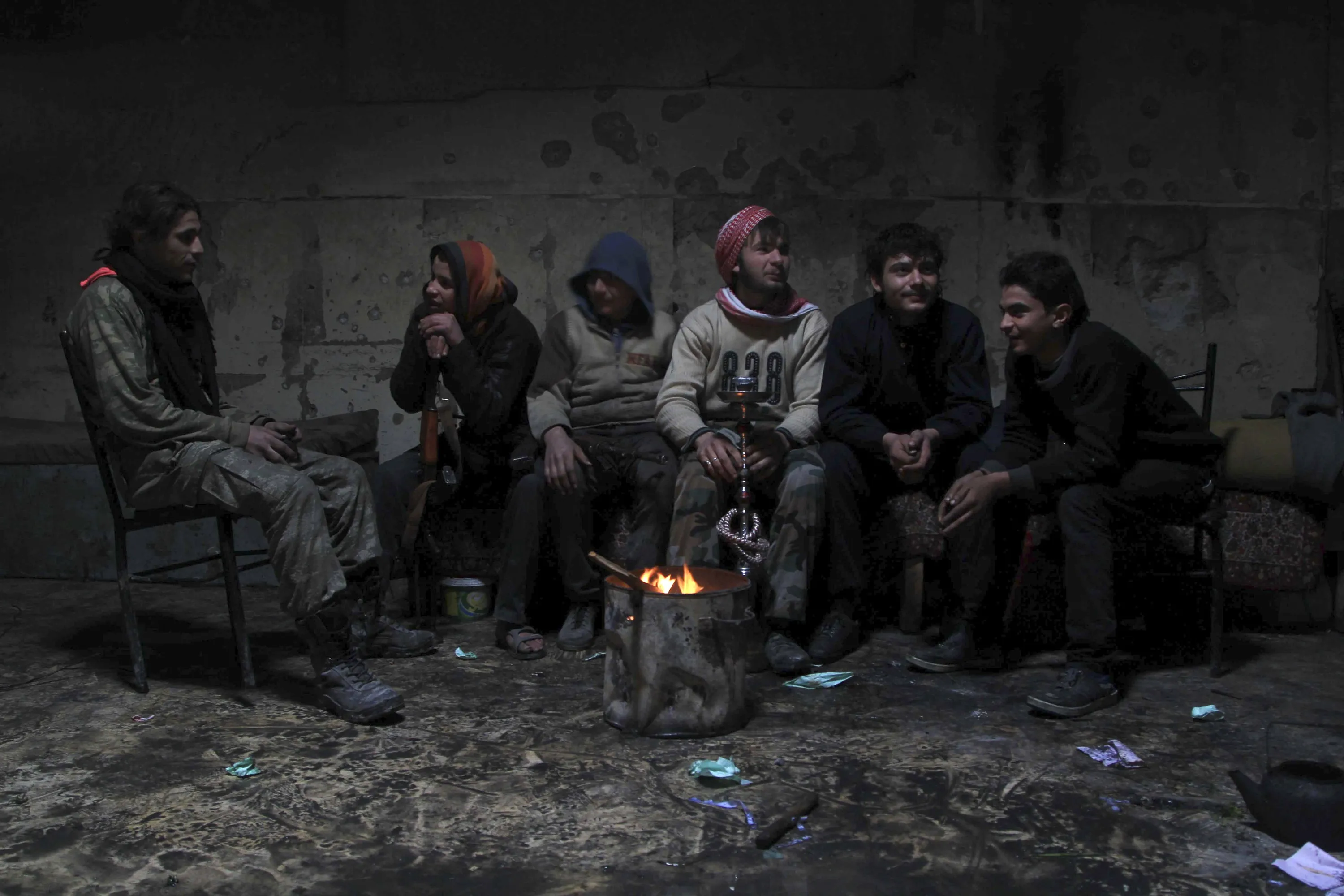 Rebel fighters rest inside a room at the old city of Aleppo near the frontline against forces loyal to Syria's President Bashar al-Assad December 28, 2014. (Photo by Jalal Al-Mamo/Reuters)