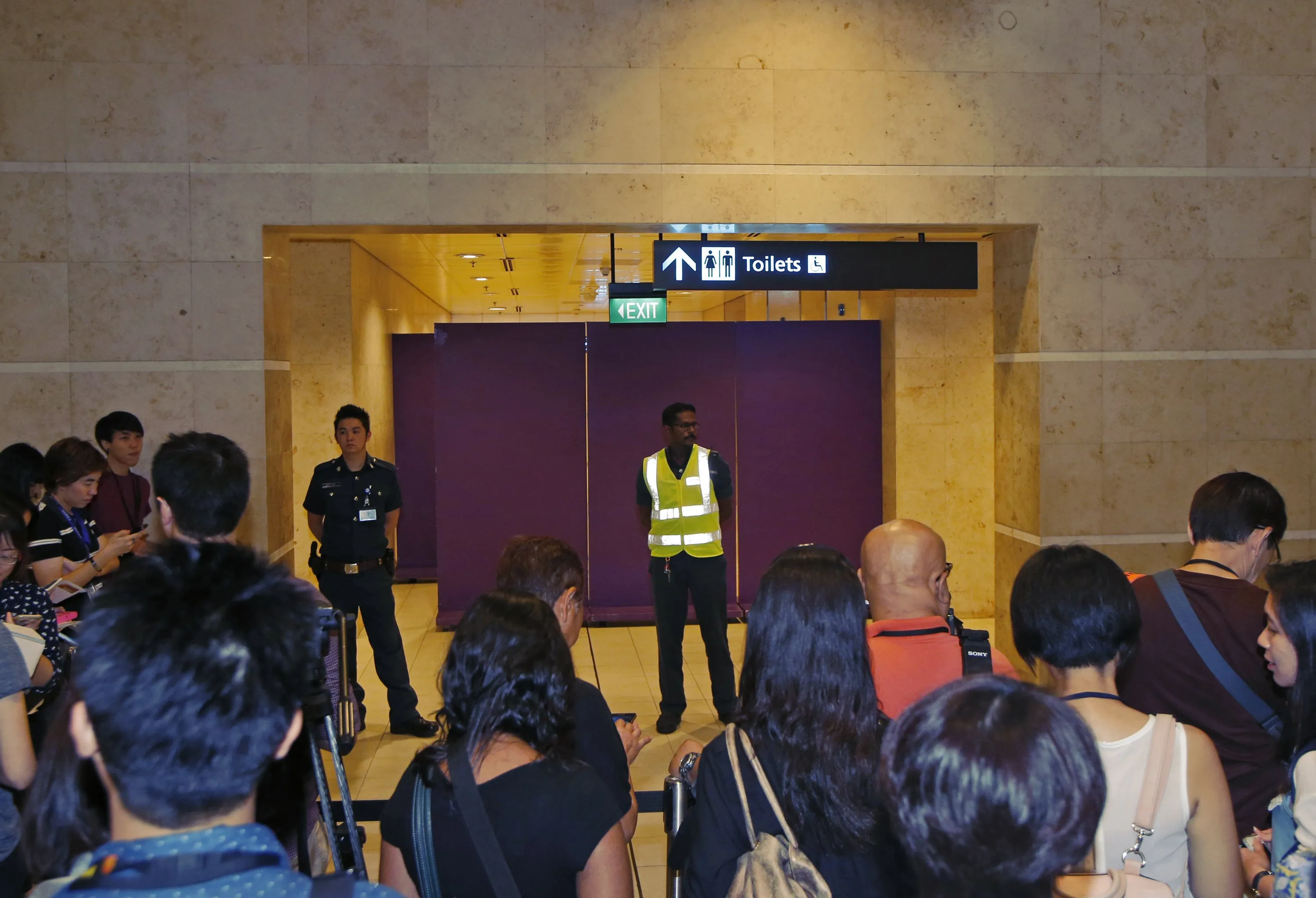 Journalists crowd the waiting area for next-of-kin and relatives of passengers onboard AirAsia flight QZ8501 at Changi Airport in Singapore December 28, 2014. (Photo by Edgar Su/Reuters)