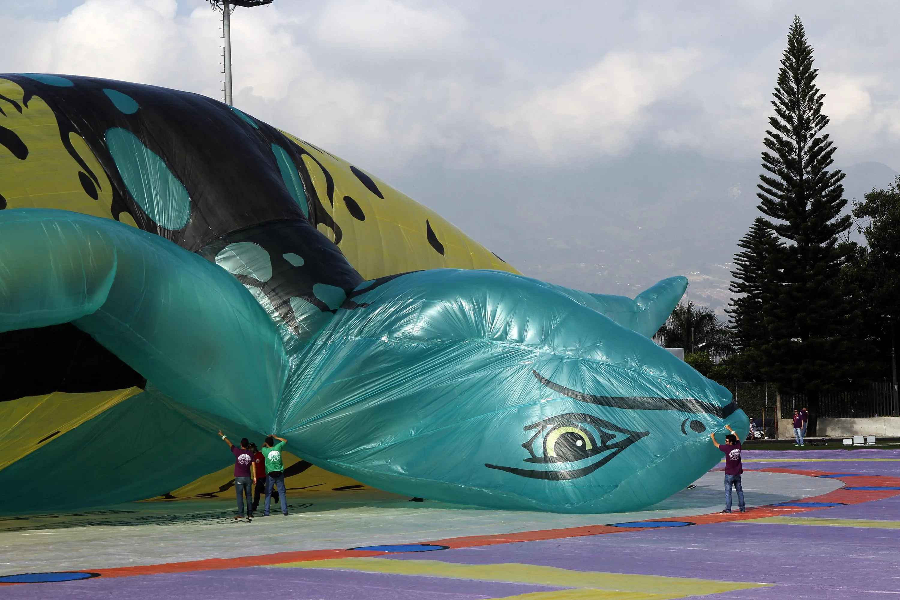 A balloon depicting a lizard is seen during the 14th Solar Balloon Festival in Envidago December 31, 2014. (Photo by Fredy Builes/Reuters)