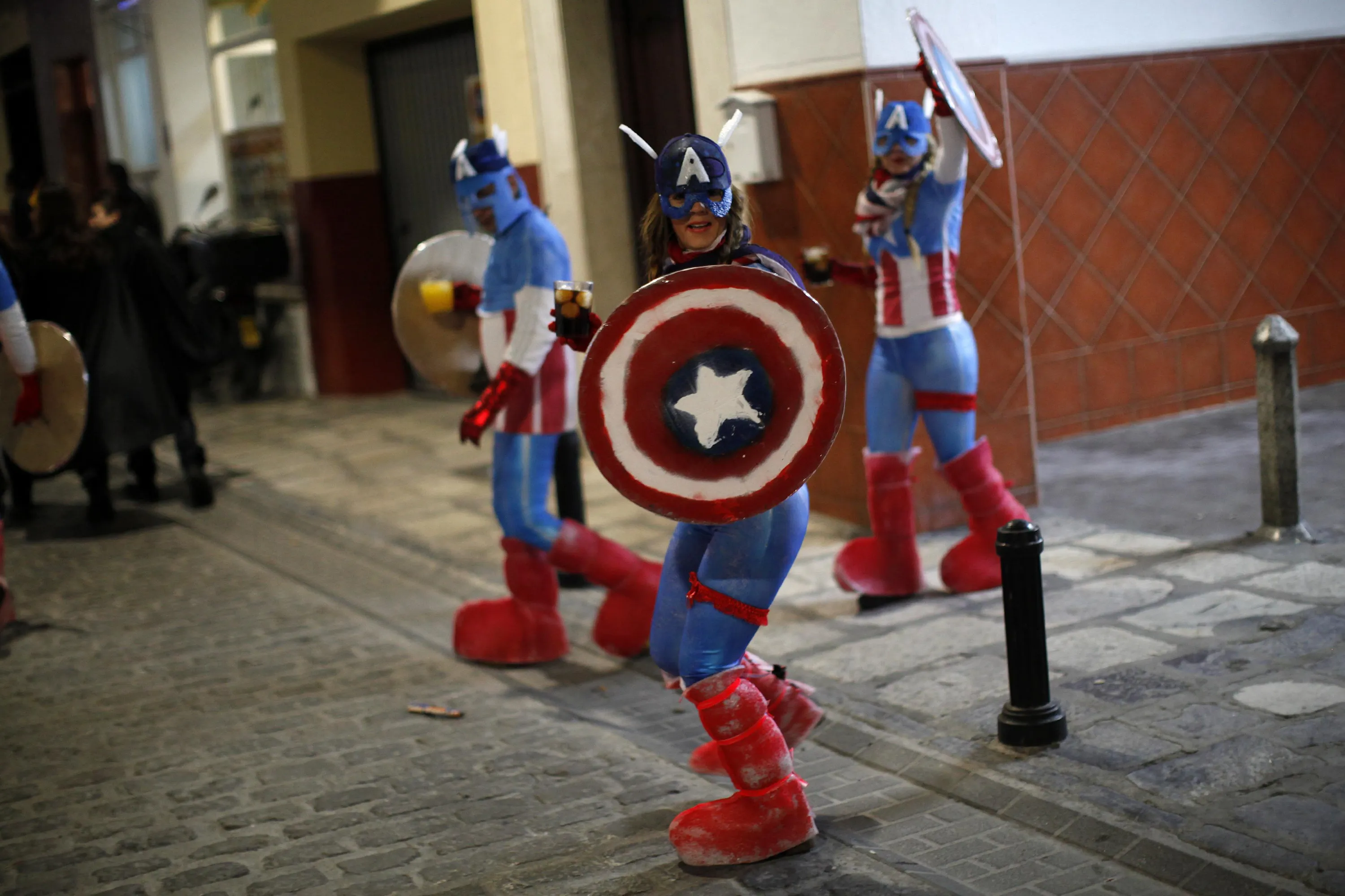 Revellers dressed up as Captain America take part in New Year's celebrations in Coin, near Malaga, southern Spain, early January 1, 2015. (Photo by Jon Nazca/Reuters)