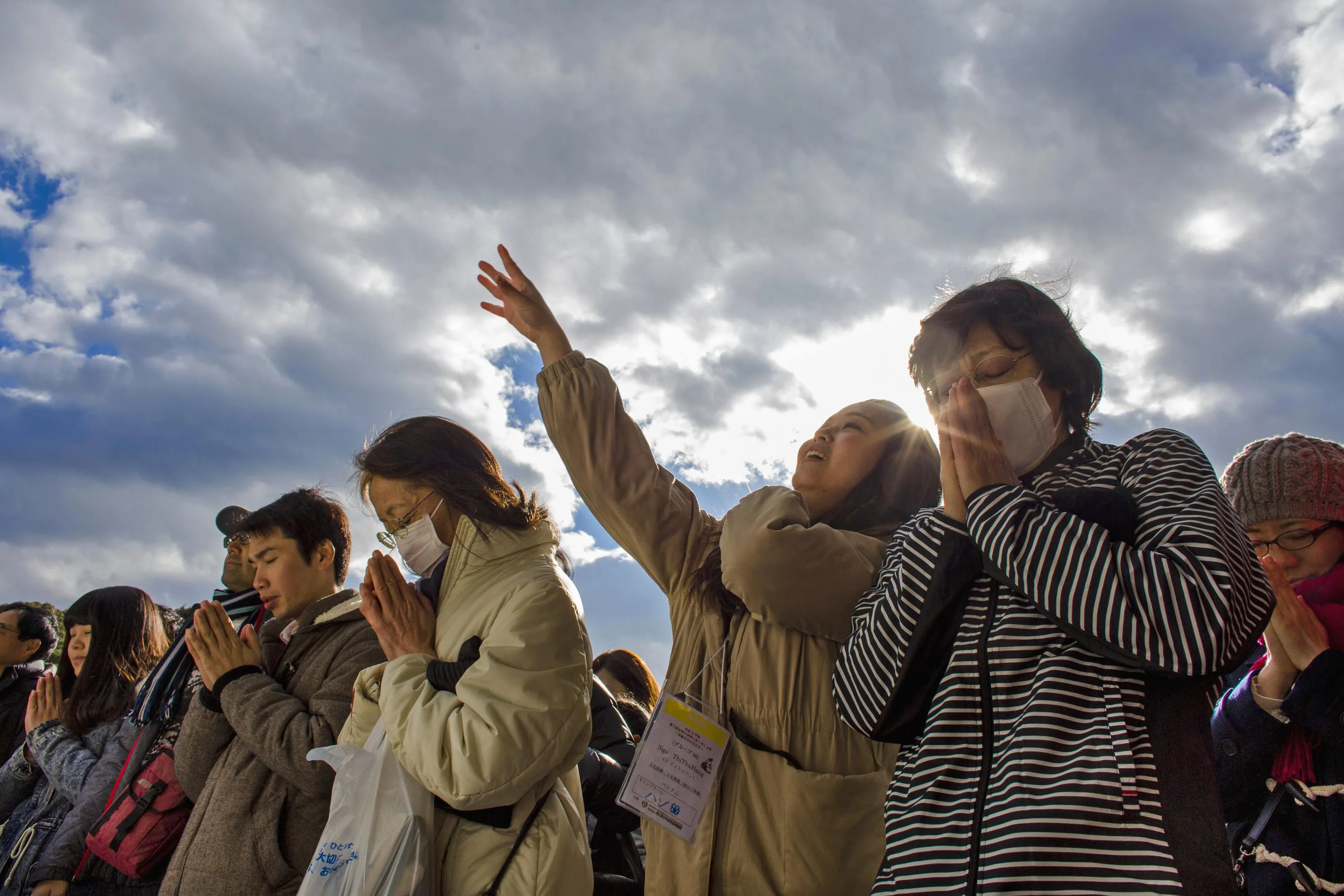 People pray and throw offerings for the new year at the Shinto Meiji Shrine in Tokyo January 1, 2015. (Photo by Thomas Peter/Reuters)