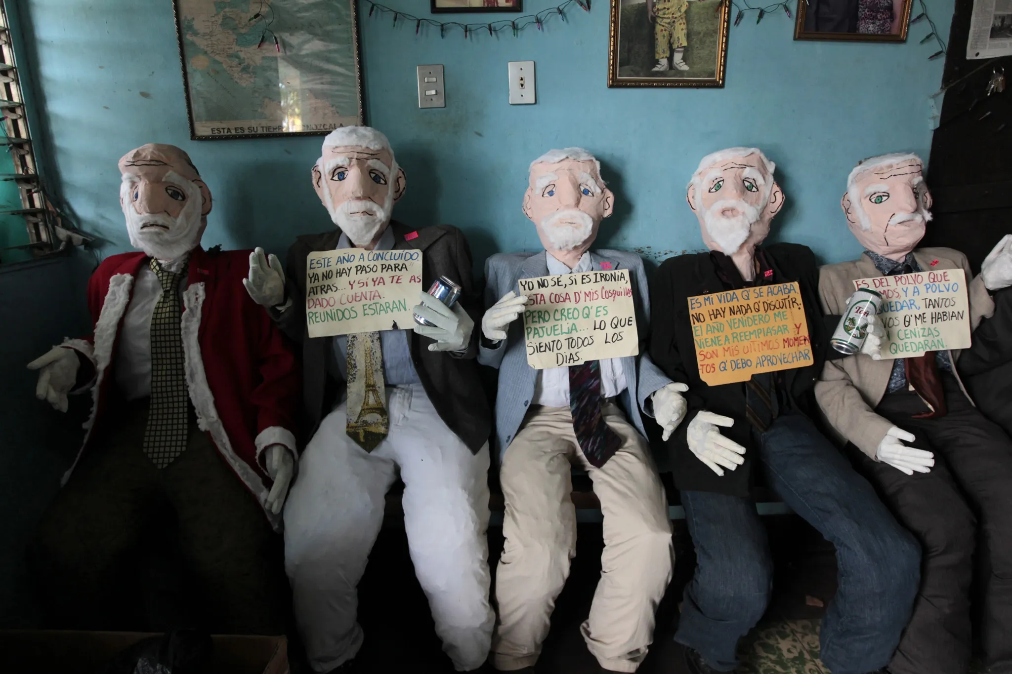 Handmade puppets are seen inside the home of Hector Villareyna, a craftsman from Leon city, in Managua December 27, 2014. Villareyna began making puppets from old clothes to be sold at 600 cordobas ($23) to represent the past year. In Nicaragua, puppets are burned traditionally as a way of saying goodbye to the old year and welcoming the new. (Photo by Oswaldo Rivas/Reuters)