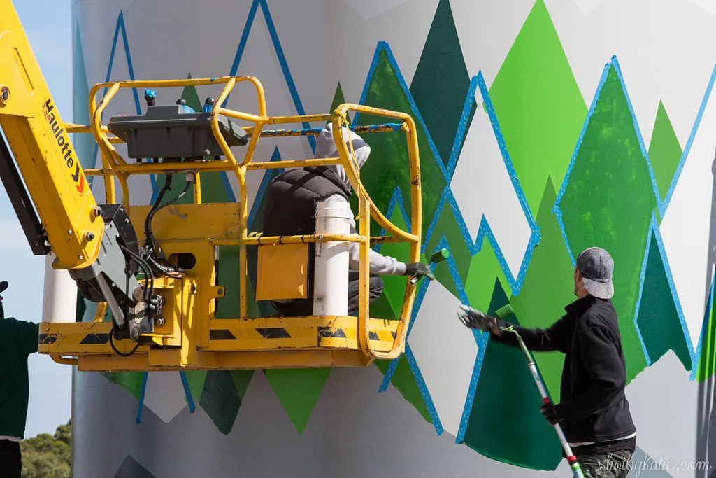 Sleep under the Stars, hosted by Hepburn Wind, has given us an opportunity to enrich our daily life with art. Thanks to this festival, a regular wind turbine was turned into a marvelous peace of art. The artwork is especially noticeable, since its theme greatly contrasts with the background behind the wind turbine. Moreover, the idea of drawing a woman-giantess walking over the mountain tops on a large conical object is quite extraordinary. Nevertheless, the grey and green colors of the picture were very well chosen for this particular image. You can only imagine the obstacles that the artists had to face when making a picture on such a large object. However, nowadays, people never cease to amaze with their ingenuity, leaving us gaping in awe at their creations.