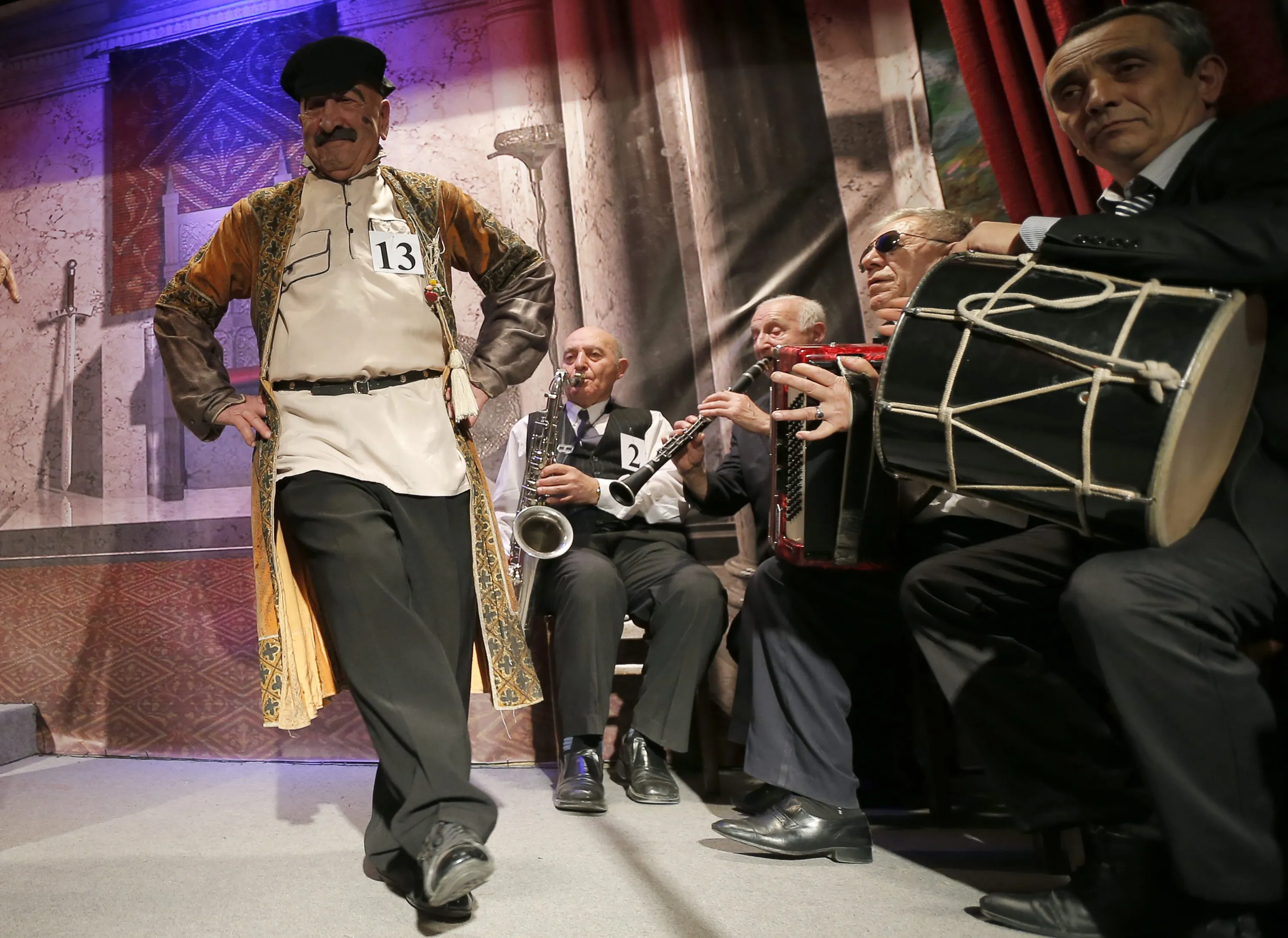 Soso Khubunaia, 80, performs during the “Super Grandmother and Super Grandfather” contest in Tbilisi, January 5, 2015. (Photo by David Mdzinarishvili/Reuters)