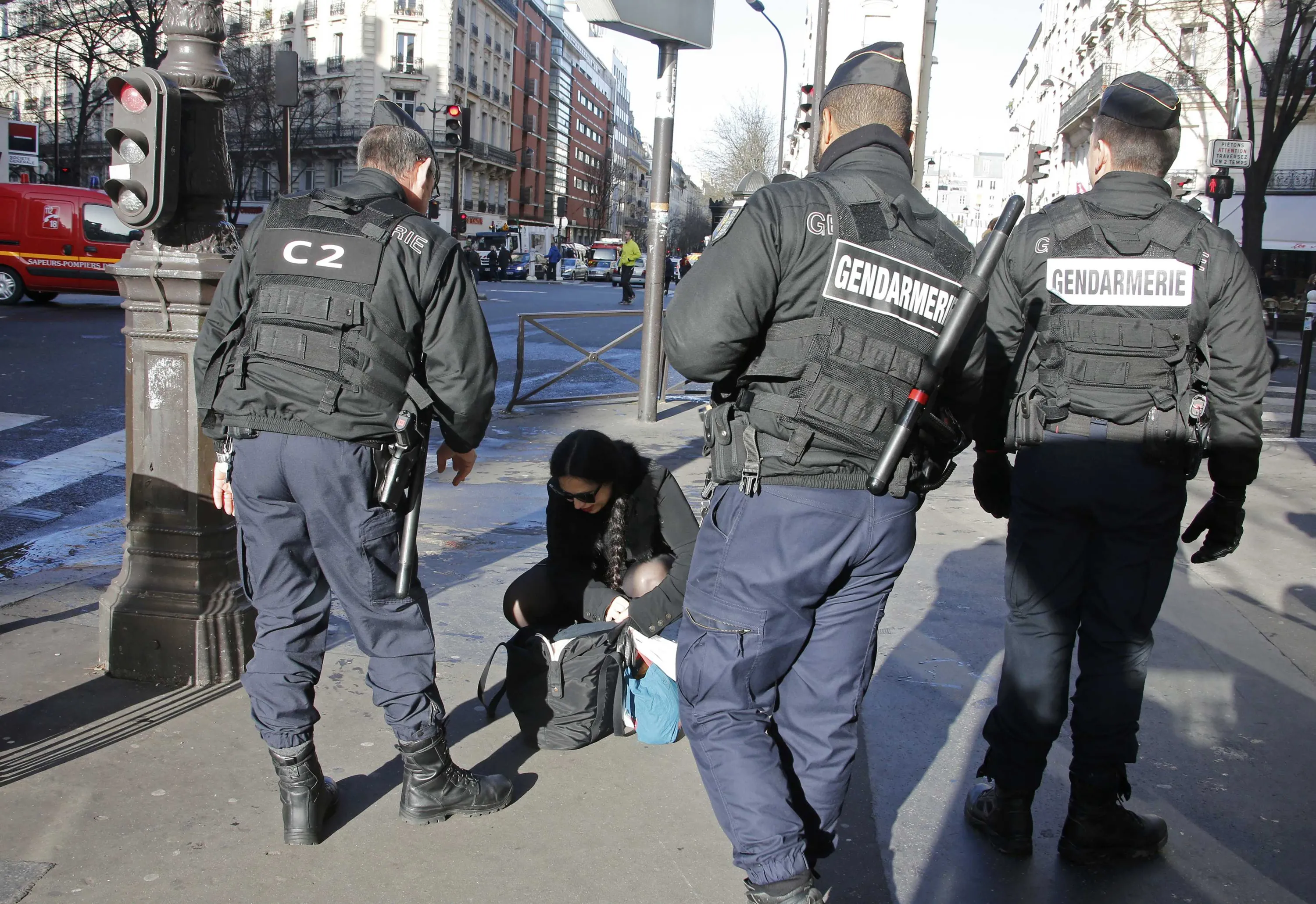 French Gendarmes check a passerby's bag as they secure the access to the solidarity march (Rassemblement Republicain) in the streets of Paris January 11, 2015. French citizens will be joined by dozens of foreign leaders, among them Arab and Muslim representatives, in a march on Sunday in an unprecedented tribute to this week's victims following the shootings by gunmen at the offices of the satirical weekly newspaper Charlie Hebdo, the killing of a police woman in Montrouge, and the hostage taking at a kosher supermarket at the Porte de Vincennes. (Photo by Eric Gaillard/Reuters)