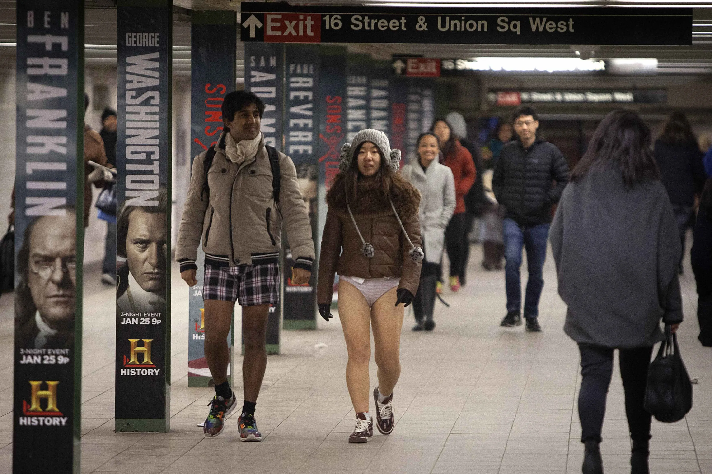 Participants walk as they take part in the “No Pants Subway Ride” in the Manhattan borough of New York January 11, 2015. (Photo by Carlo Allegri/Reuters)