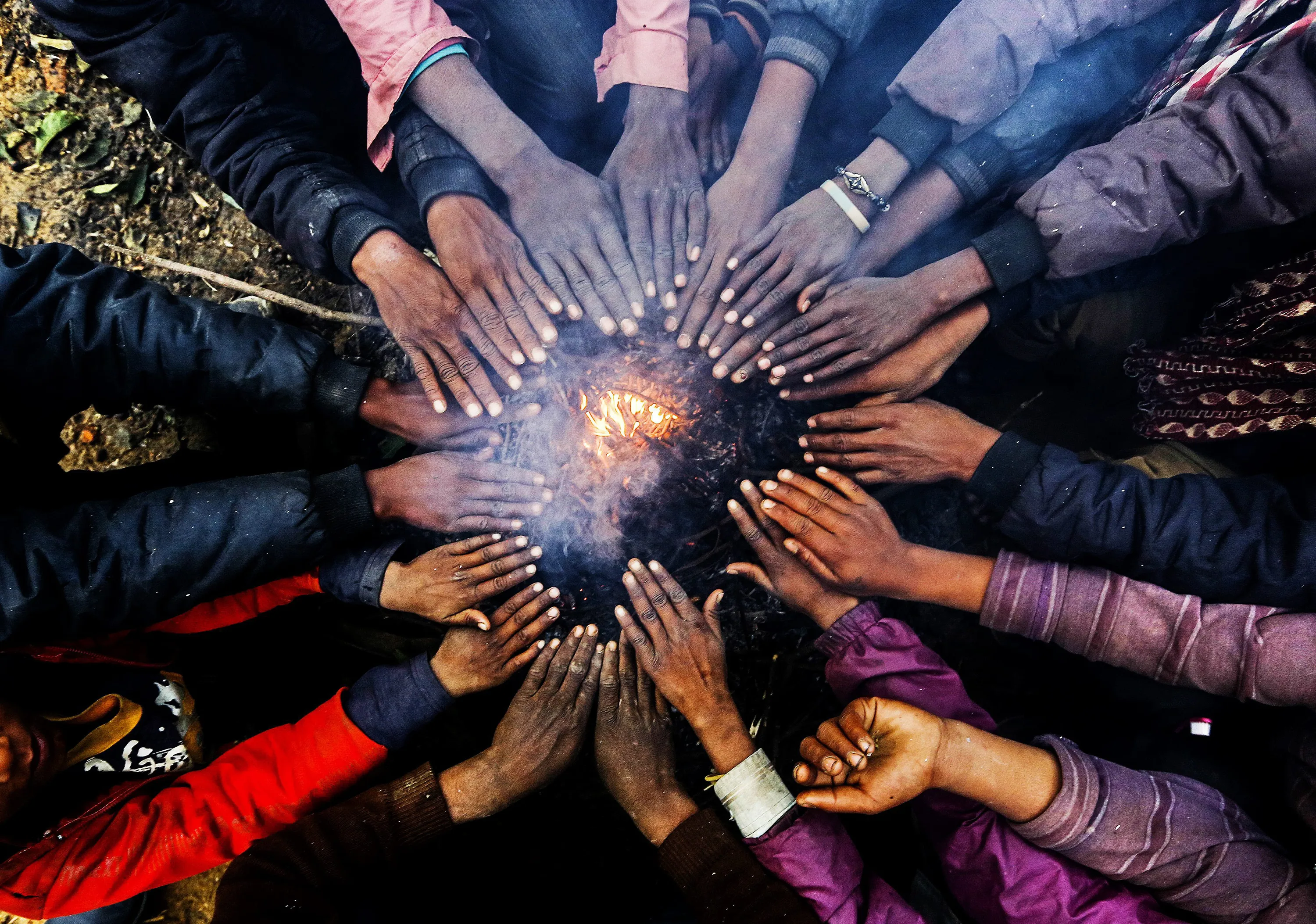 Brick factory workers warm themselves on a fire during a winter morning at a factory in Lalitpur, Nepal, 06 January 2015. Indian and Nepali seasonal migrant labourers started to arrive at brick factories around the Kathmandu valley with beginning of winter season. (Photo by Narendra Shrestha/EPA)
