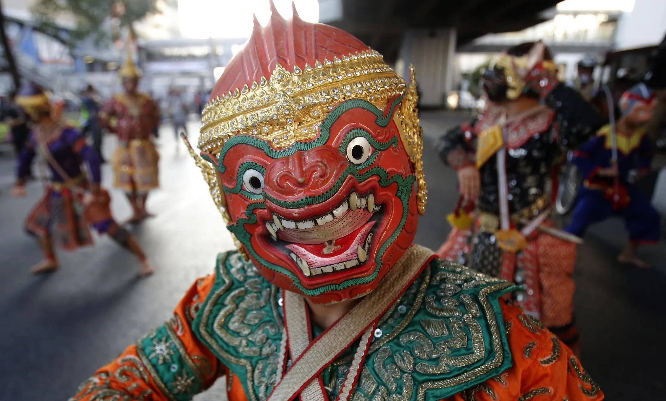 Actors representing Hanuman, a monkey god featured in the classic Indian Ramayana epic, also adopted into the culture of Thailand, perform during a parade in Bangkok to promote tourism Wednesday, January 14, 2015. (Photo by Sakchai Lalit/AP Photo)