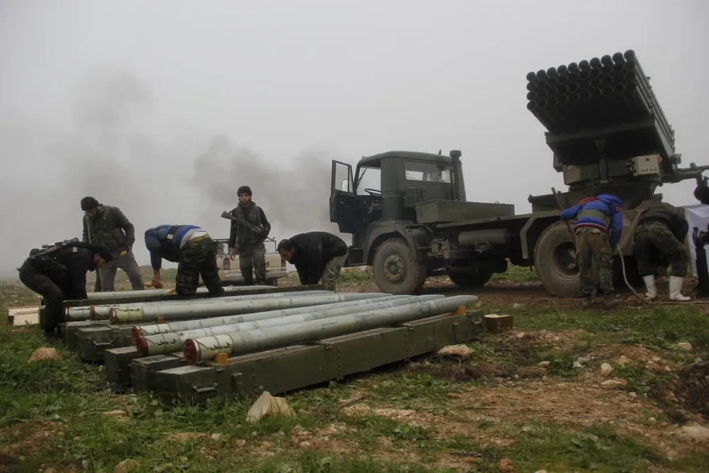 Al-Furqan brigade fighters, part of the Free Syrian Army, prepare Grad rockets before firing them towards forces loyal to Syria's president Bashar Al-Assad located in Mork town, Hama countryside, from Khan Sheikoun, Idlib countryside January 17, 2015. REUTERS/Mohamad Bayoush (SYRIA - Tags: POLITICS CIVIL UNREST CONFLICT )