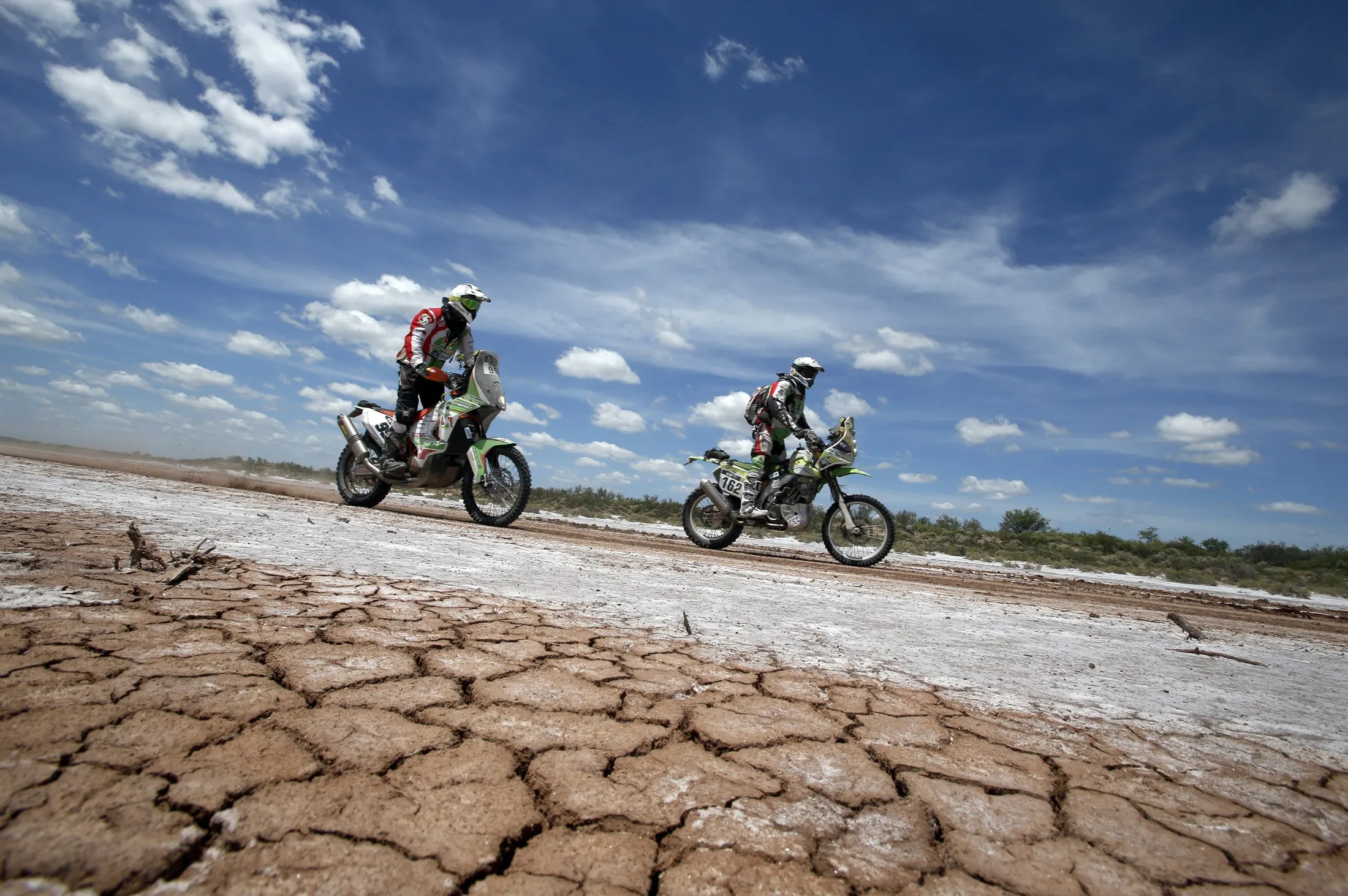 KTM rider Pierre Cherpin (L) of France and Kawasaki rider Guido Martinelli of Argentina ride during the 2nd stage of the Dakar Rally 2015, from Villa Carlos Paz to San Juan January 5, 2015. (Photo by Jean-Paul Pelissier/Reuters)