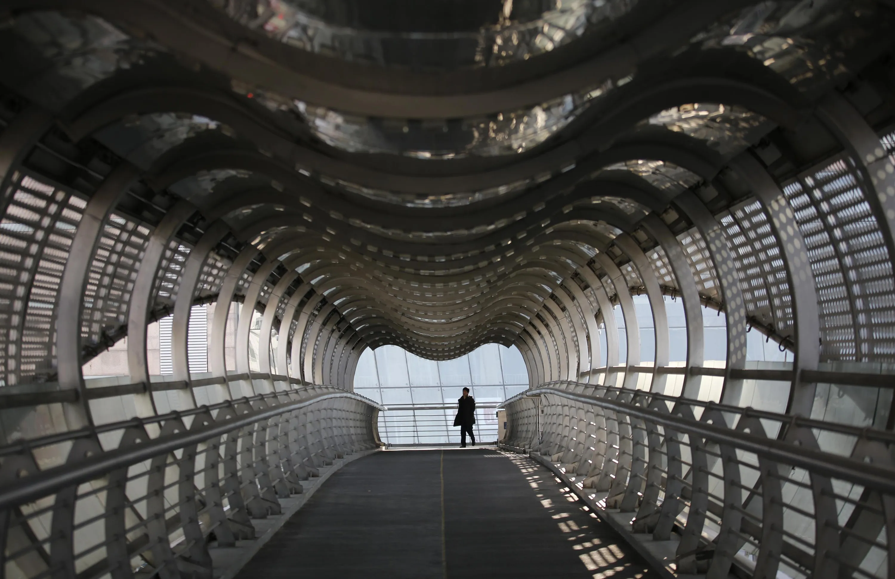 A man walks on a pedestrian bridge which is connected to a shopping mall in Beijing January 19, 2015. (Photo by Kim Kyung-Hoon/Reuters)