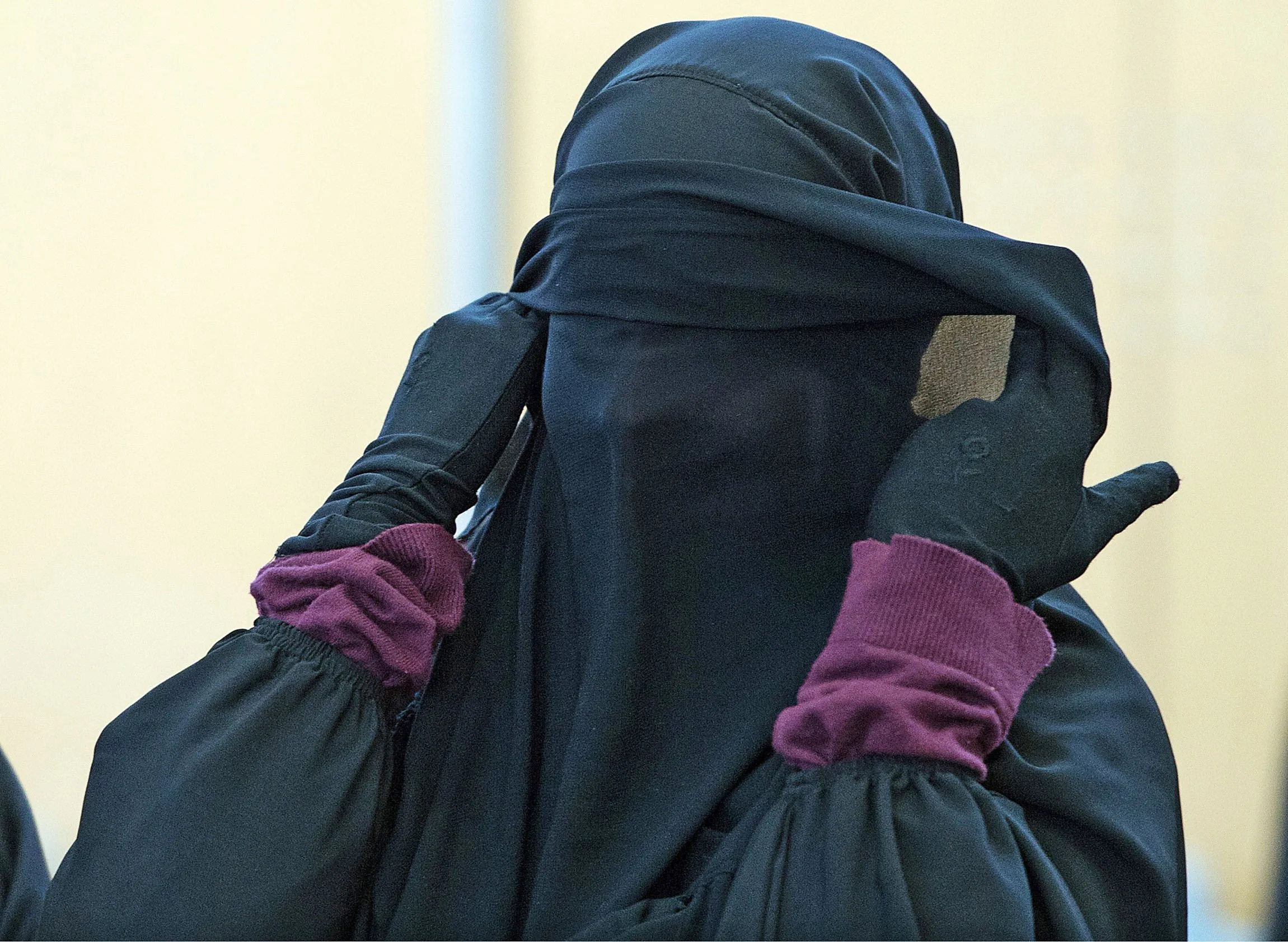 Veiled defendant Jennifer Vincenza M waits for the beginning of her trial on January 21, 2015 in Duesseldorf, western Germany. A trial against two woman and a man accused of funding the Islamic State group started at Duesseldorf's Higher Regional Court. (Photo by Federico Gambarini/AFP Photo)