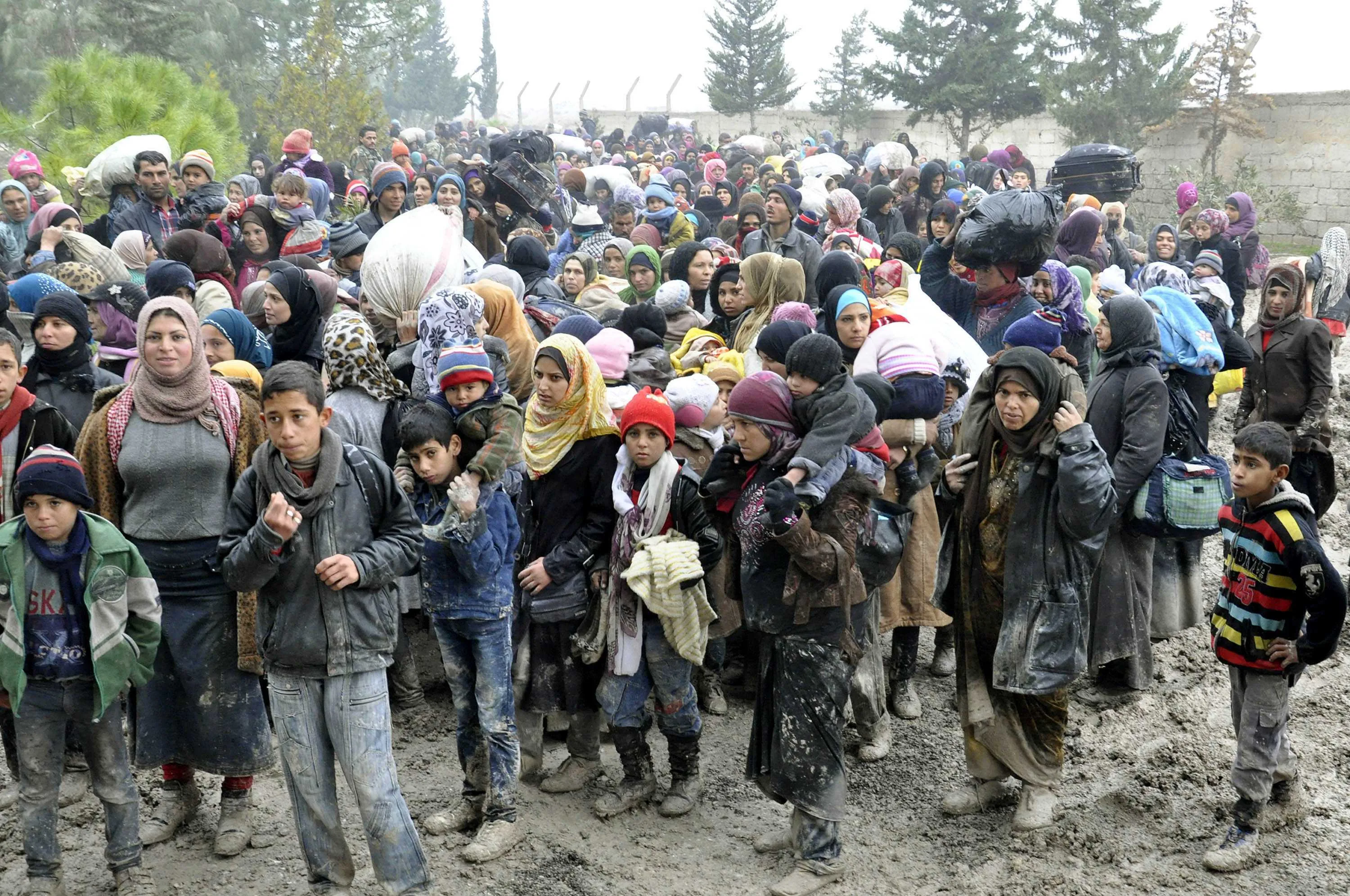 Syrian residents flee their homes following clashes between opposition fighters and forces loyal to Syria's President Bashar al-Assad in Douma, near Damascus, January 17, 2015, in this handout photograph distributed by Syria's national news agency SANA. (Photo by Reuters/SANA)