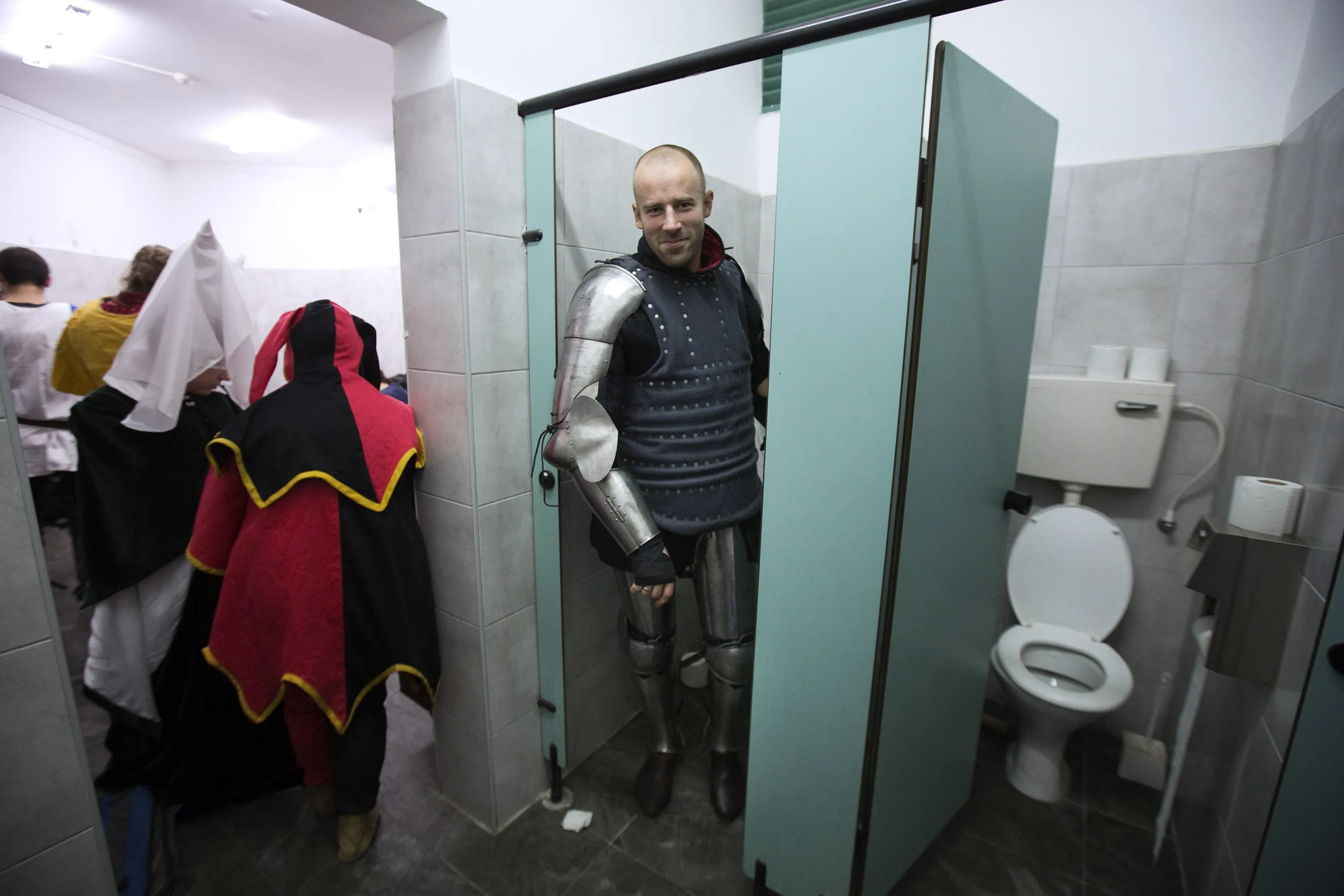 A competitor from Denmark is seen at the dressing room during the “World Medieval Fighting Championship – the Israeli Challenge” in Rishon Letzion near Tel Aviv on January 22, 2015. (Photo by Amir Cohen/Reuters)