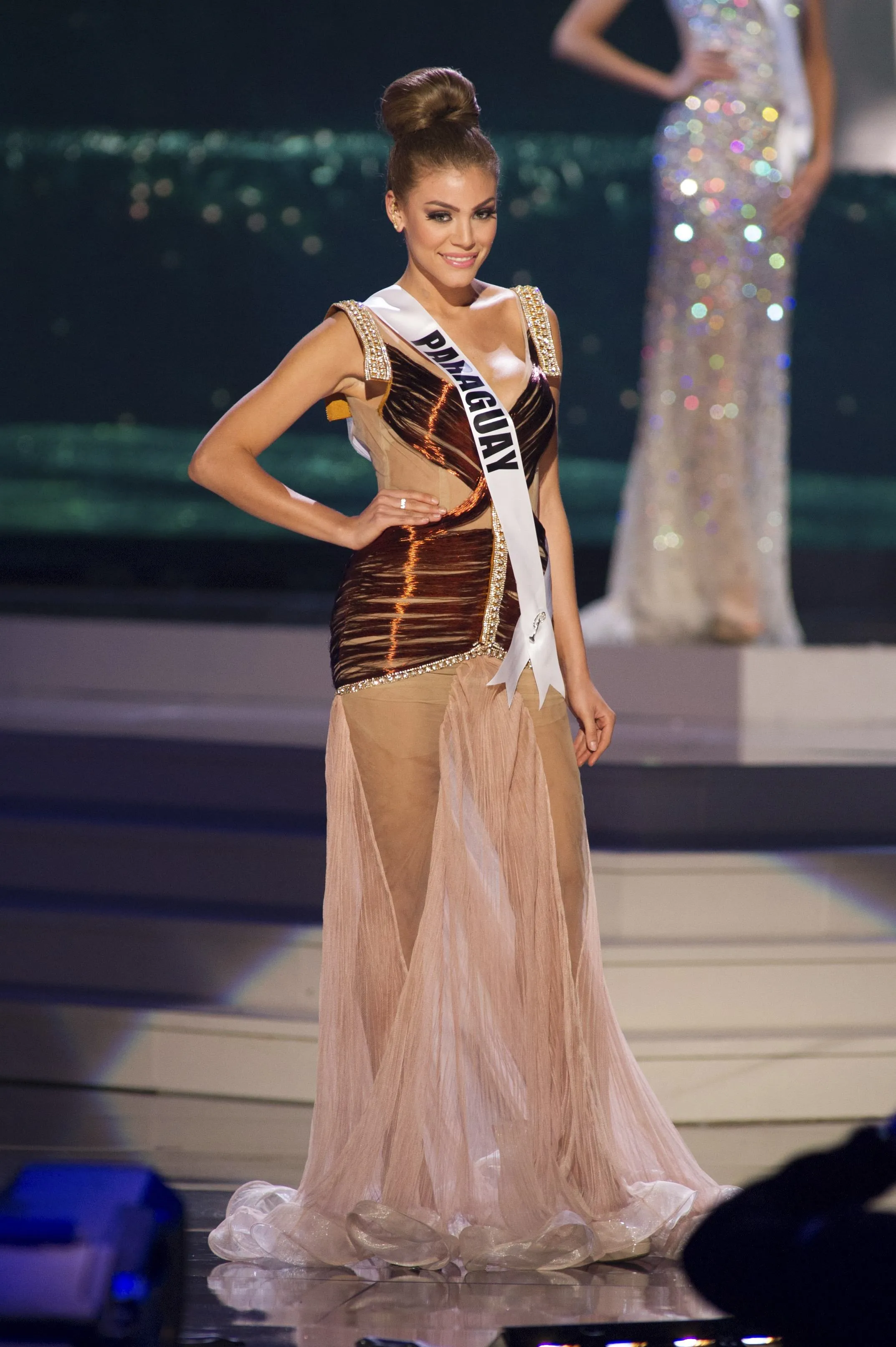 Sally Jara, Miss Paraguay 2014 competes on stage in her evening gown during the Miss Universe Preliminary Show in Miami, Florida in this January 21, 2015 handout photo. (Photo by Reuters/Miss Universe Organization)