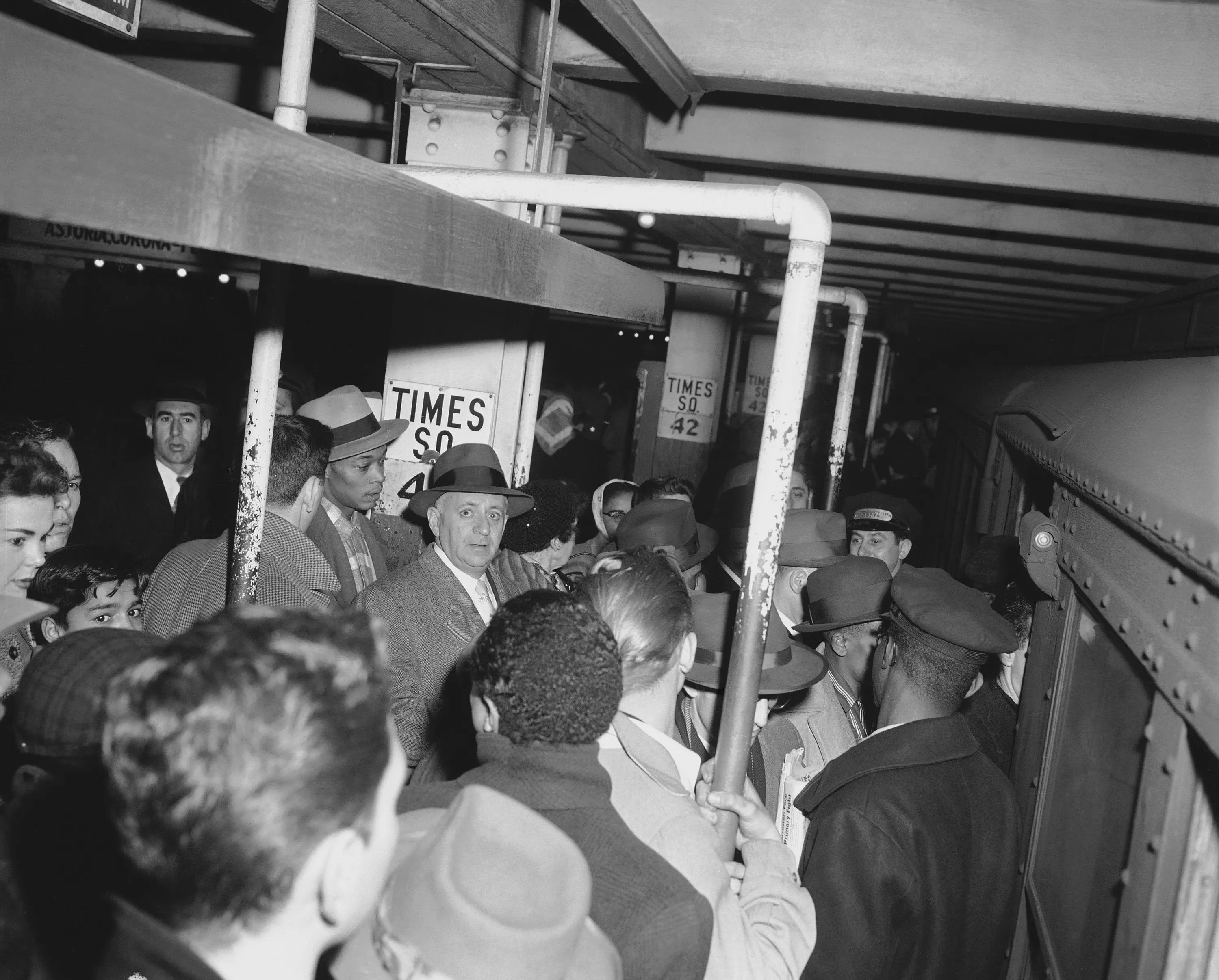 Crowd at Times Square station subway in New York City on March 6, 1956. (Photo by AP Photo/HVN)